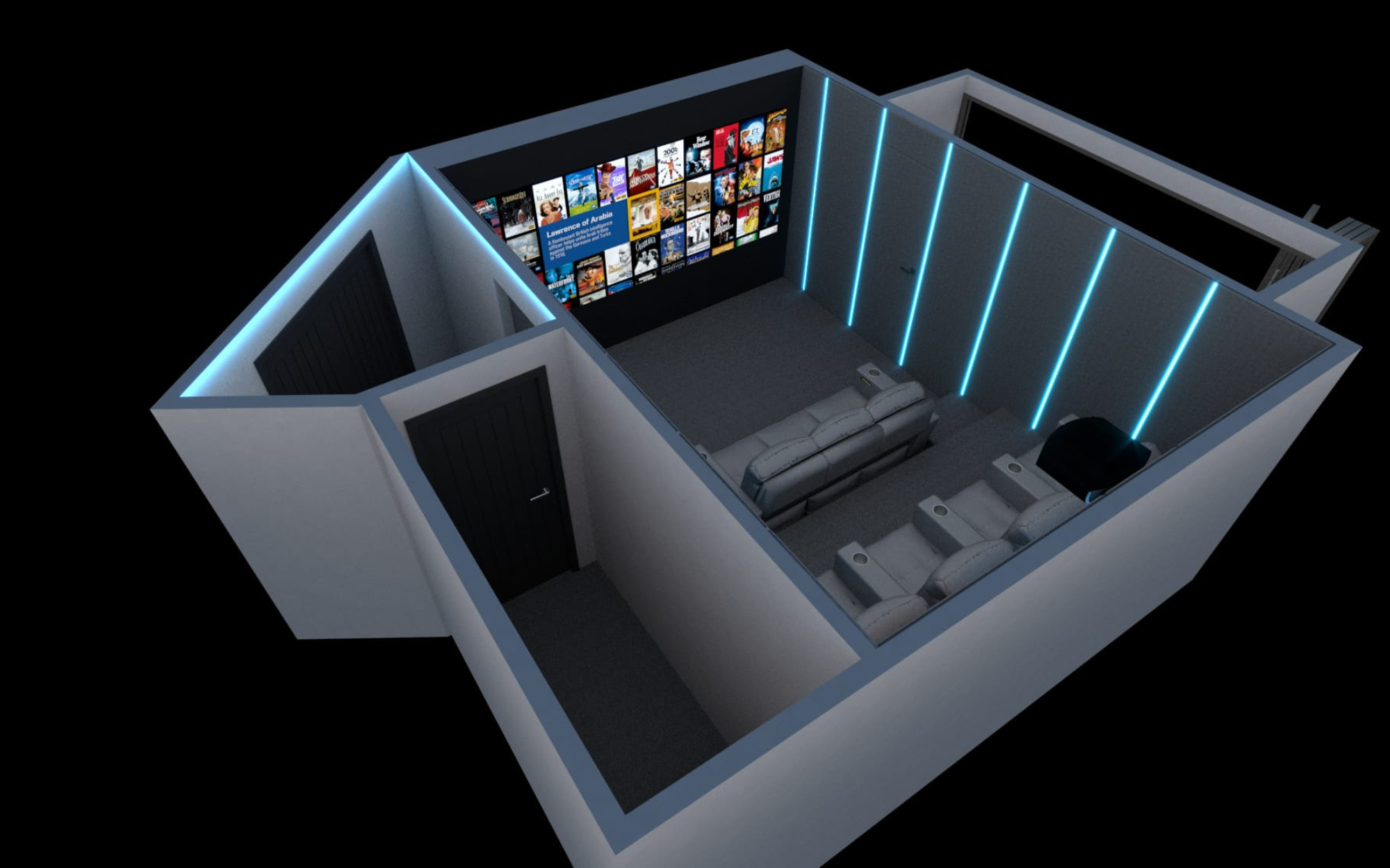 After a thorough demonstration at the integrator’s North Leeds showroom and extensive design consultations, the clients chose Bespoke Home Cinemas to manage the entire project, from design and construction to installation. Through detailed plans, CAD drawings and 3D renders, the team provided detailed visualisations and configurations, ensuring clarity for the family to envisage the final result.