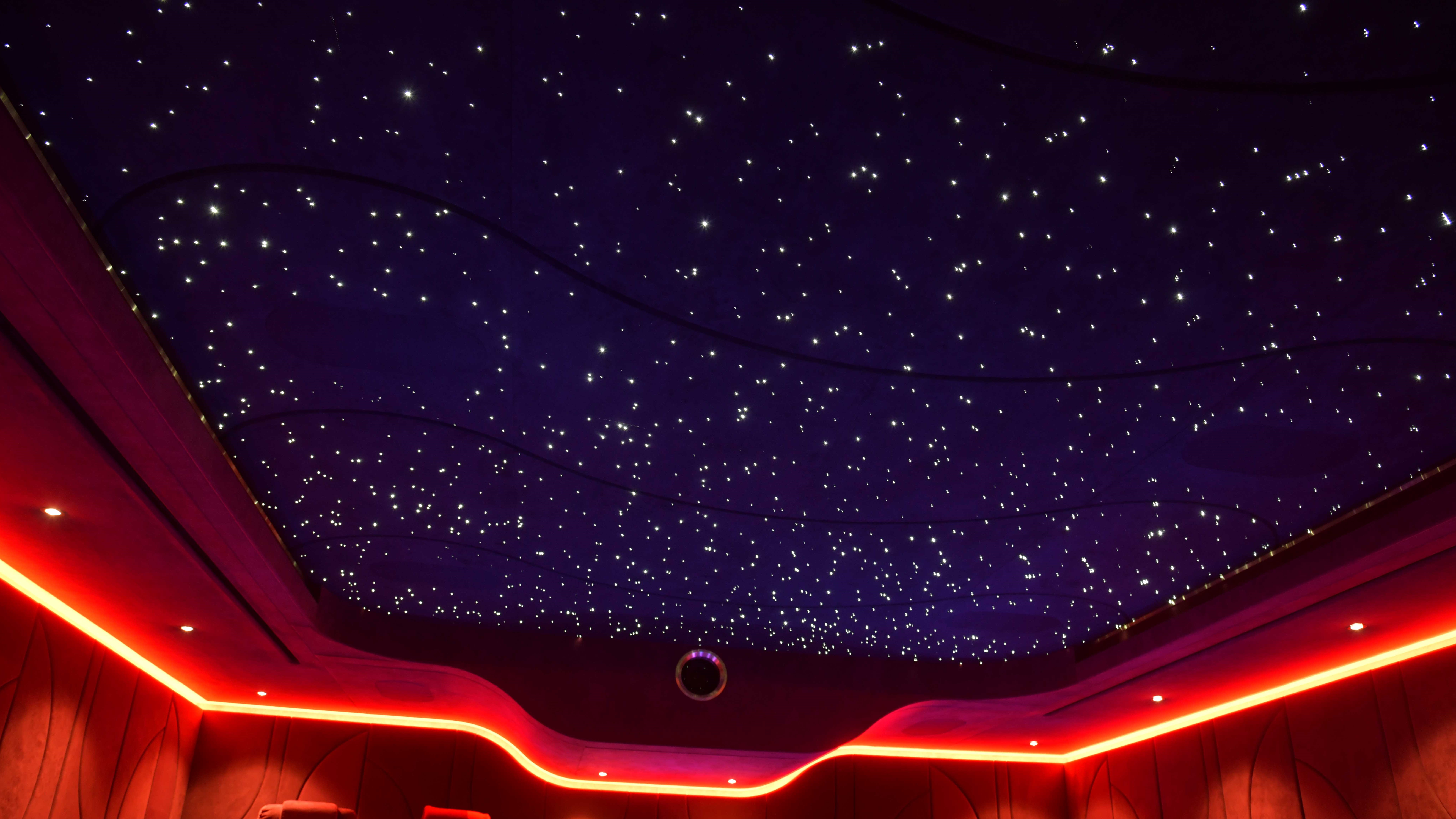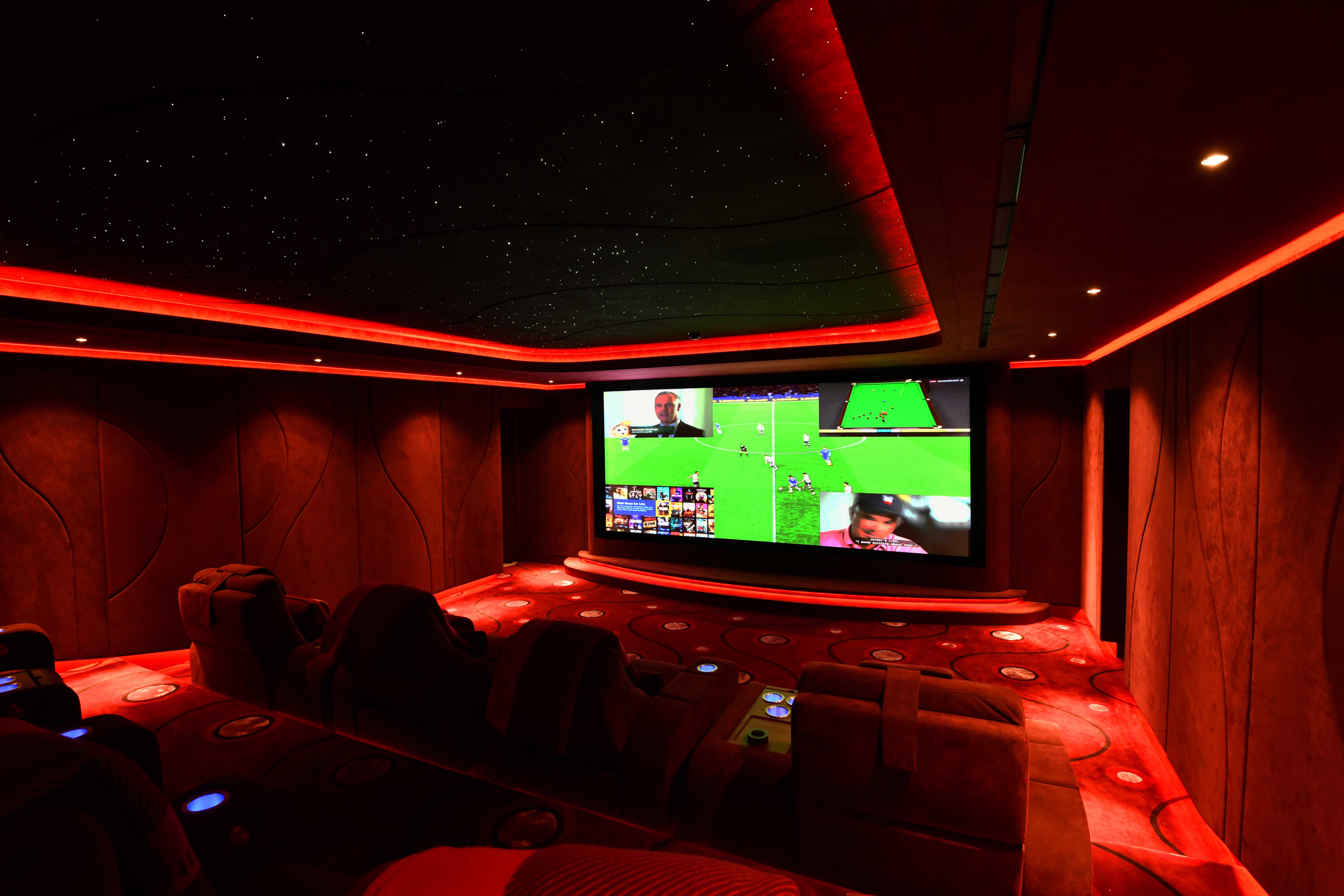 For the cinema room, which later acquired the name of ‘The Ruby Cinema’, Cyberhomes and the interior designers worked together on a dark-red colour scheme to create a design that would result in every wall, the ceiling and the other interior elements blending together seamlessly.