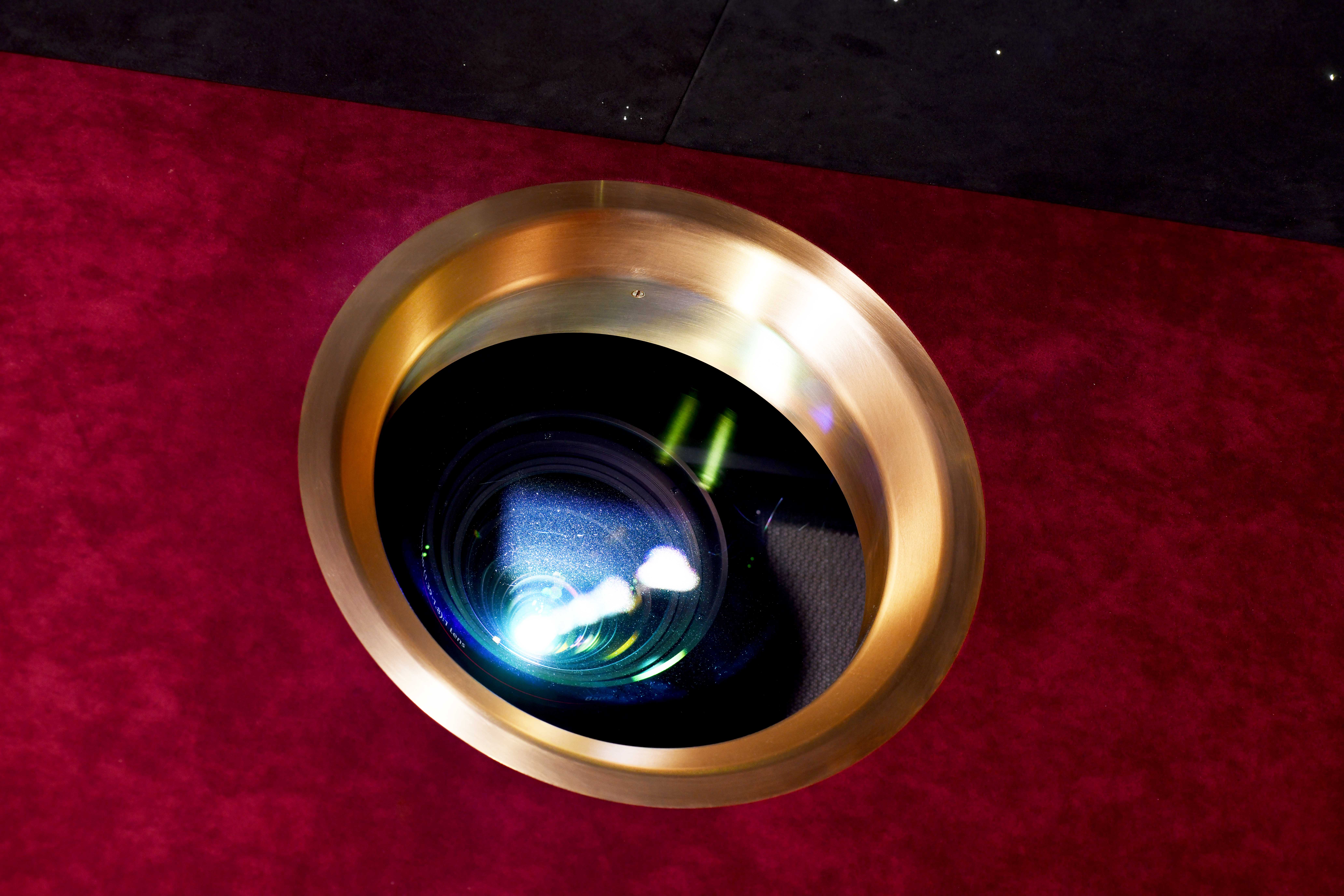 This large projector is housed within an acoustically isolated and climate-controlled enclosure. In order to meet the client’s requirement for fifteen seats, and with the aesthetic appeal of a big projector eye in the room, the enclosure had to be mounted above the rear seating. The lens outlet was finished with a custom-made brass eyelet designed by Cyberhomes, and constructed in a finish to match the bespoke cupholders in the seating.