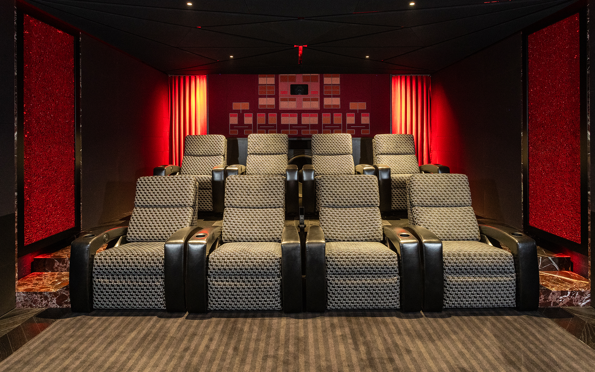 The Full Force cinema has become a reference point for luxury installations worldwide. The client uses the space often, hosting movie nights where guests compare the experience favourably to world-class commercial venues.