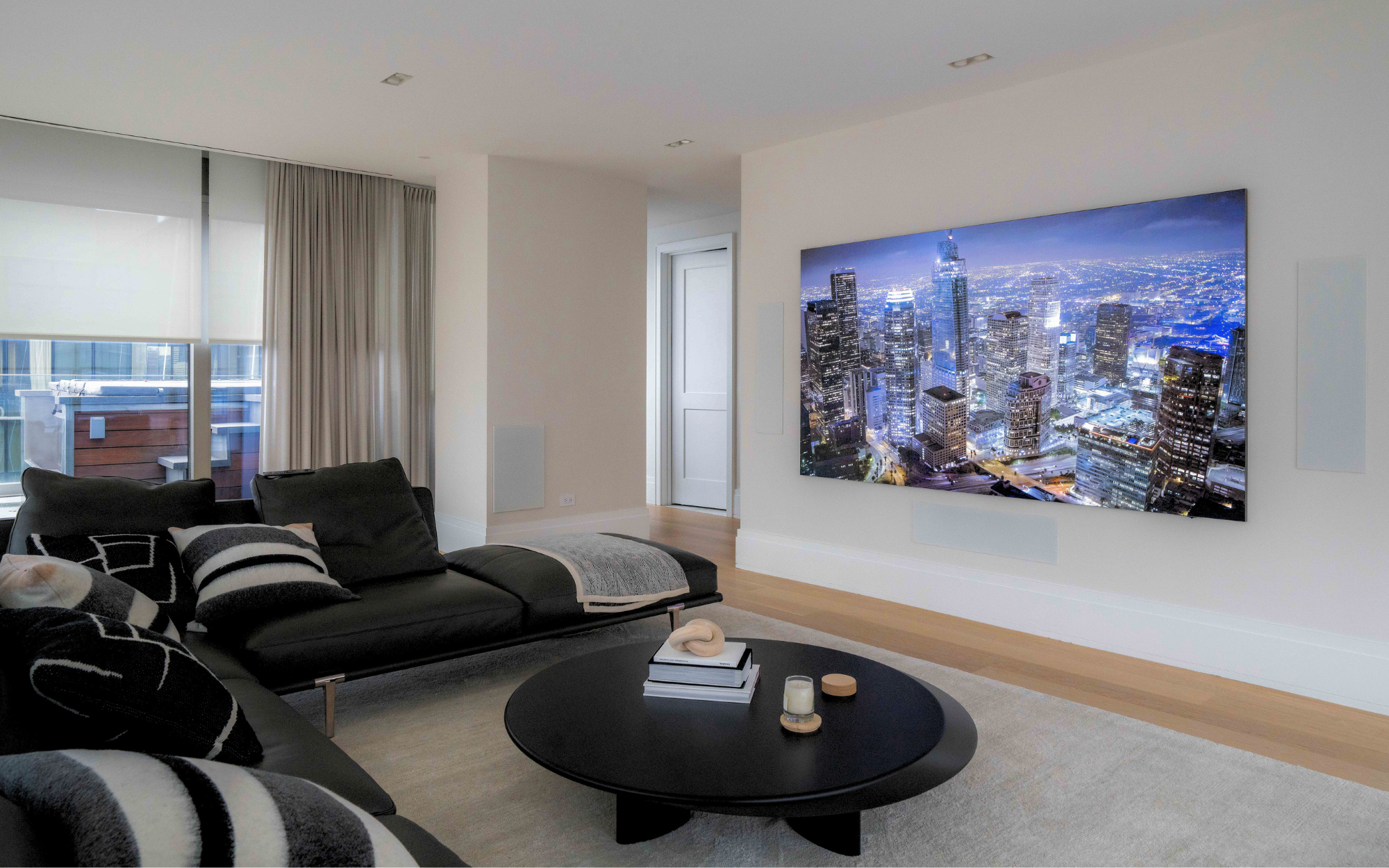 Brightness proved to be a key challenge in this project due to the need to provide an outstanding audiovisual experience in both natural daylight from its large floor-to-ceiling windows and low-light evening conditions. Electronic Lifestyles worked closely with the architect and interior designer to ensure that every element of the AV system was thoughtfully integrated and found a solution in the installation of an advanced LED screen that could deliver high-quality visuals even in the brightest conditions. However, this created an acoustical challenge, which was easily resolved by Meridian’s Image Elevation technology. “We relied on Meridian’s Image Elevation technology, which was key to this project. Using this, we were able to locate the centre speaker below the LED wall, and we were still able to raise the voice dialogue to the perceived height, ensuring an undetached listening experience was obtained.”