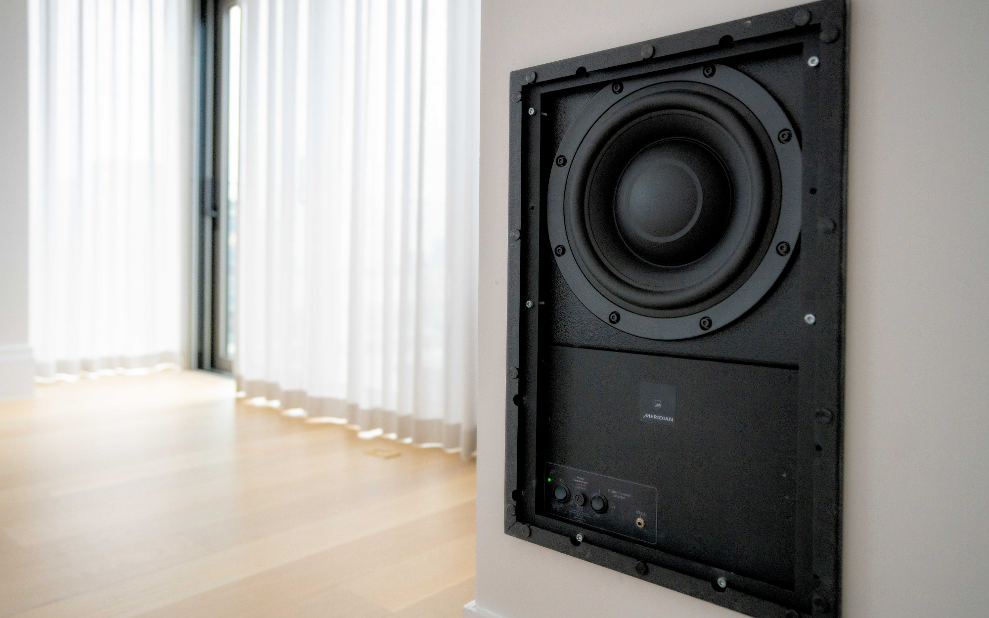 To enhance the bass performance, a Meridian In-Wall DSW600 Subwoofer was integrated. This subwoofer utilises FFA Technology to provide powerful and precise bass. Completing the system, two Meridian In-Ceiling DSP320.2 speakers deliver high-quality surround sound with built-in amplification, ensuring impressive sound performance. The entire setup is coordinated through a Meridian G65 Surround Sound Processor, ensuring smooth operation.