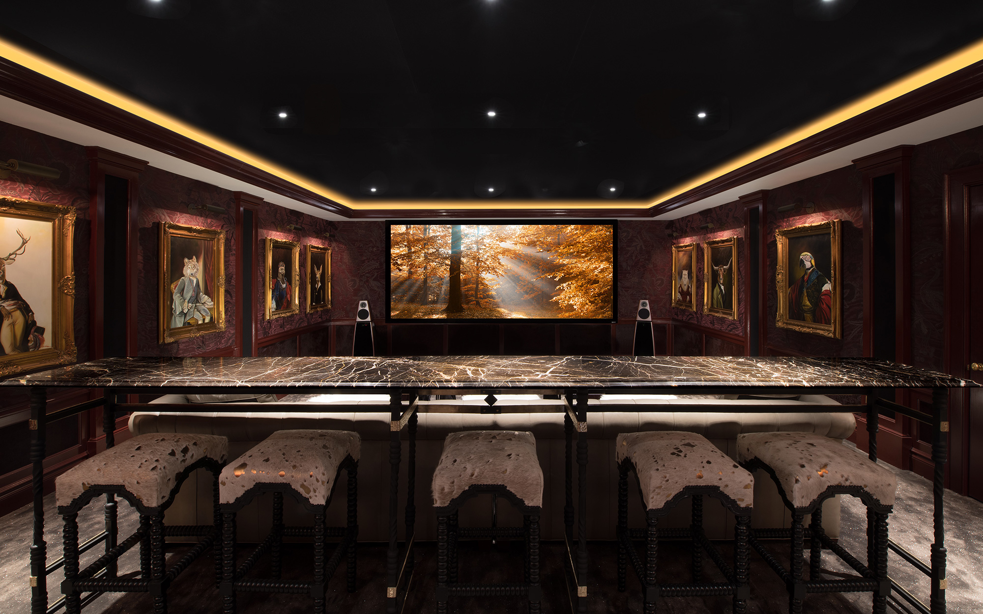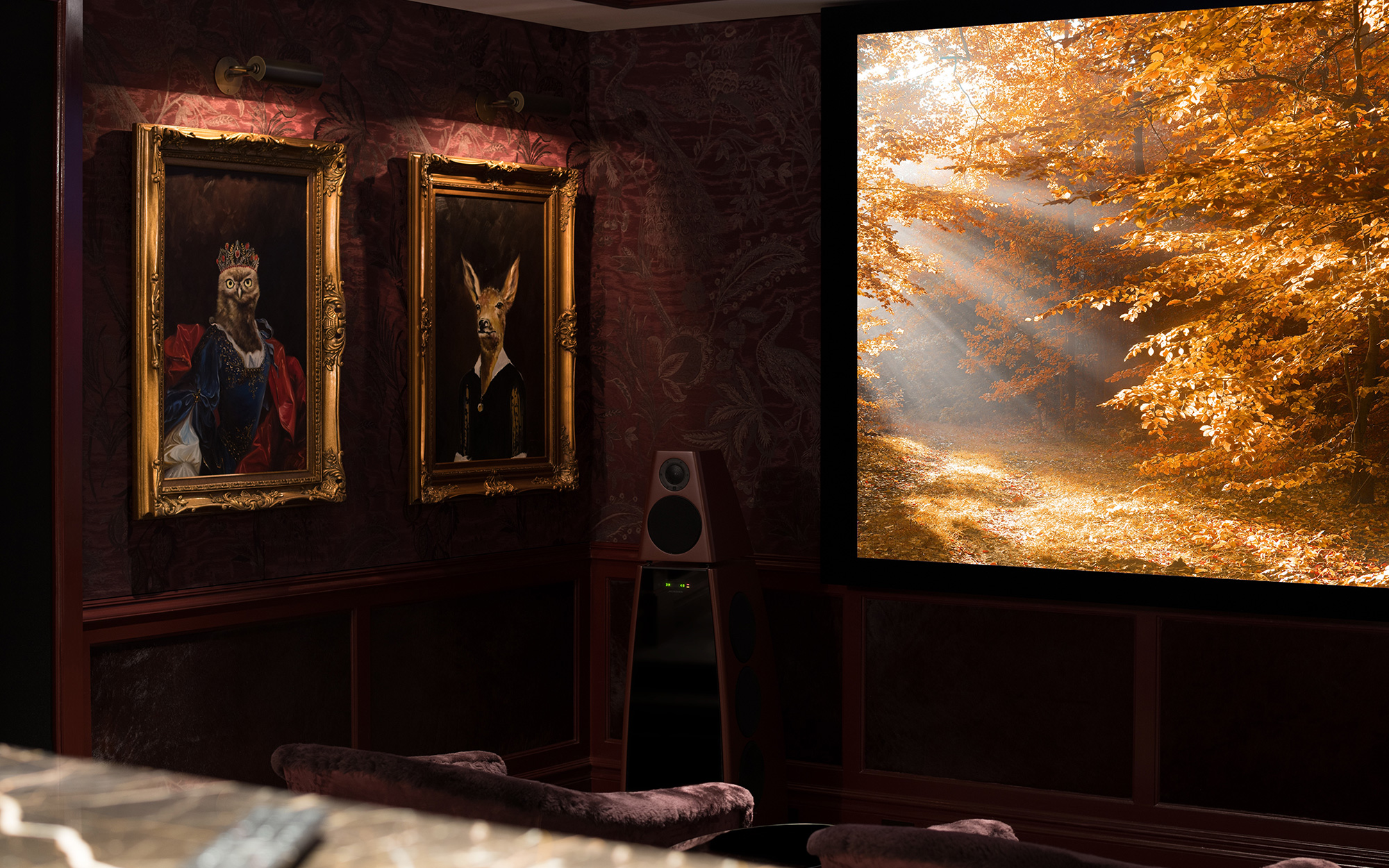 Tucked away in the basement of a lavish upstate New York property, an enchanted, whimsical home theatre awaits. We have collaborated with leading technology integration company, Osbee Industries, to provide a powerful and superior quality audio solution for an unforgettable home cinema experience, which recently scooped the 2018 Electronic House Home of the Year award for Best Theatre.