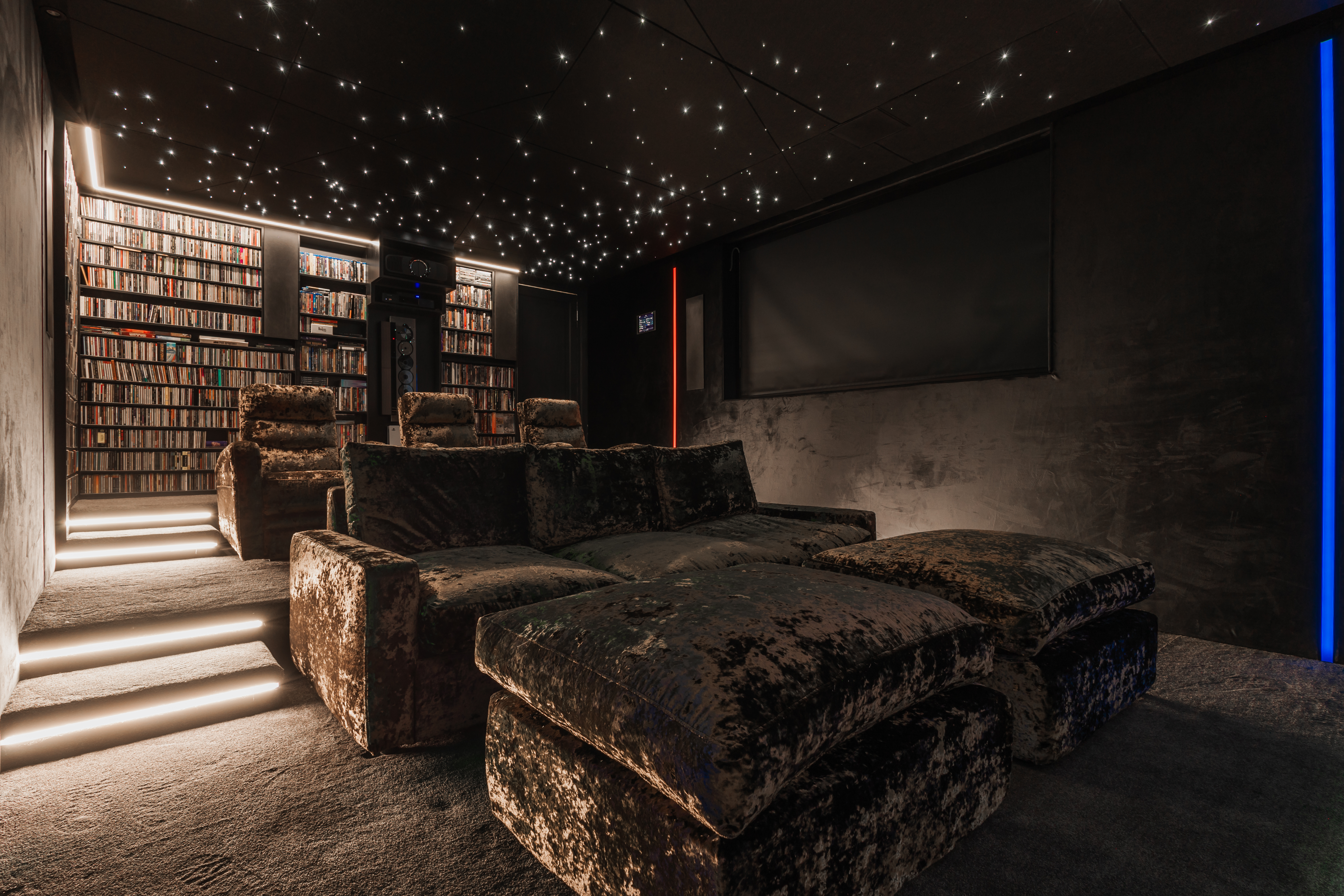 The cinema room includes a full Meridian DSP 7.4.2 in-wall speaker set-up, which will provide showroom visitors with a fantastic level of detail and immersion. The Sensory Dispensary worked closely with Meridian’s Design & Specification Service team, who provided them with an enhanced performance solution for the home cinema.
