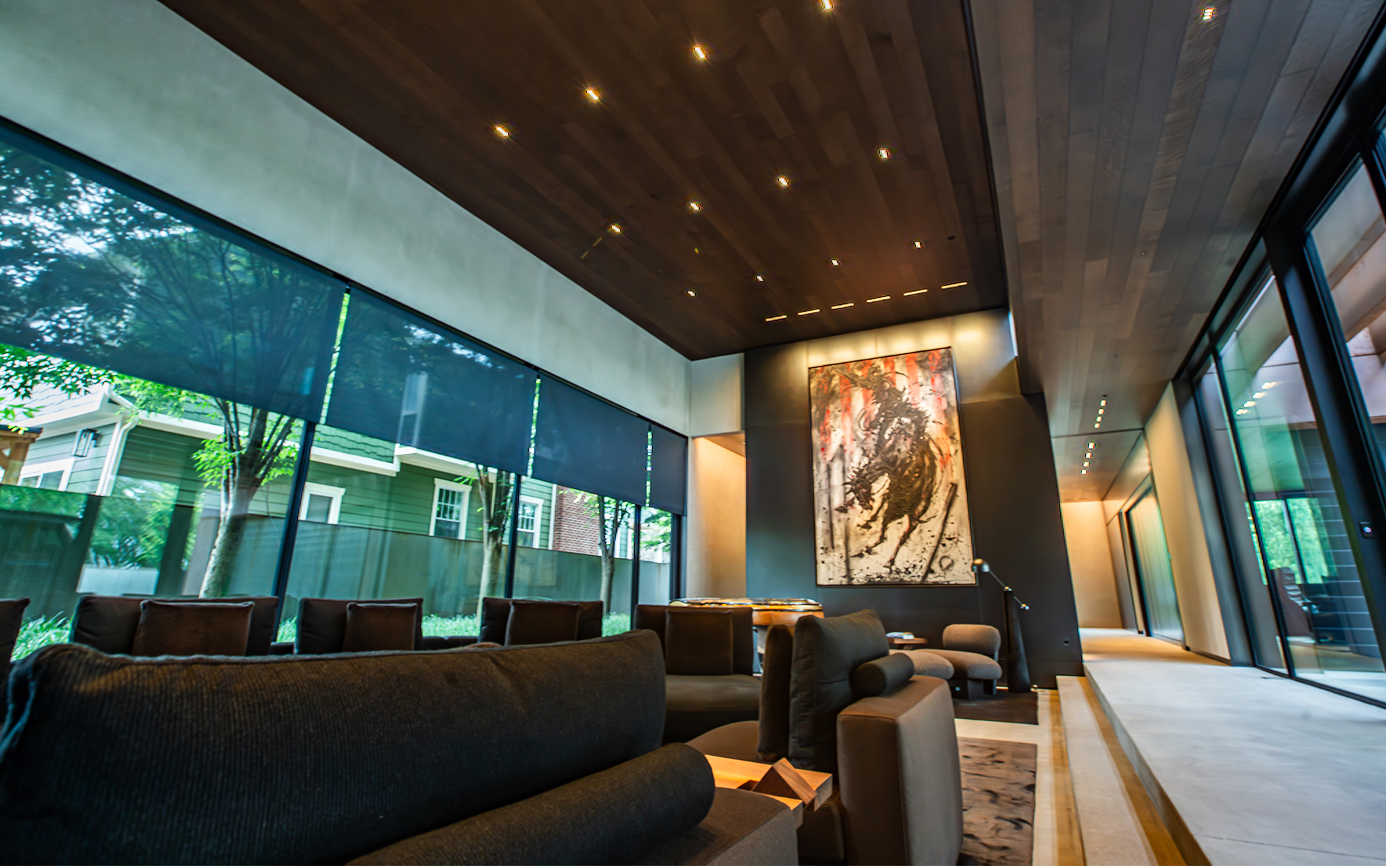 In the northern suburb of Birmingham, Michigan, a distinctive modern home stands out for its commitment to minimalism, clean lines and hidden technology. Built from insulated precast concrete and finished with weathered steel, the house has a refined industrial aesthetic. Inside, the home utilises blackened steel, concrete, unpainted plaster and pre-finished wood, creating a space where technology is ever-present but almost entirely concealed. The one deliberate exception: the home cinema.