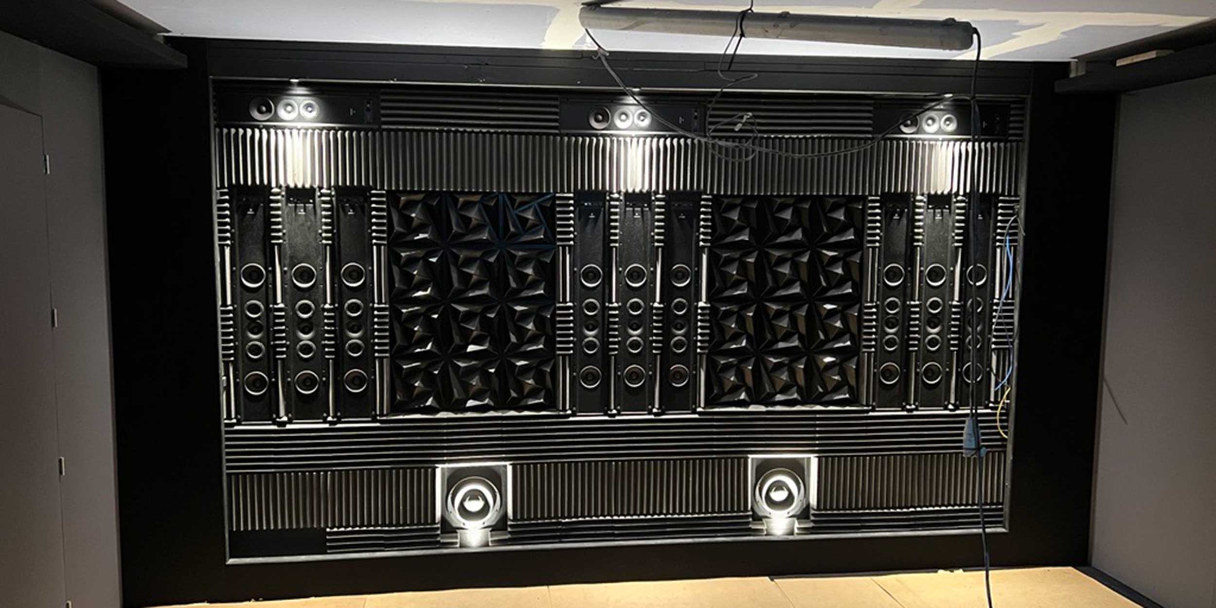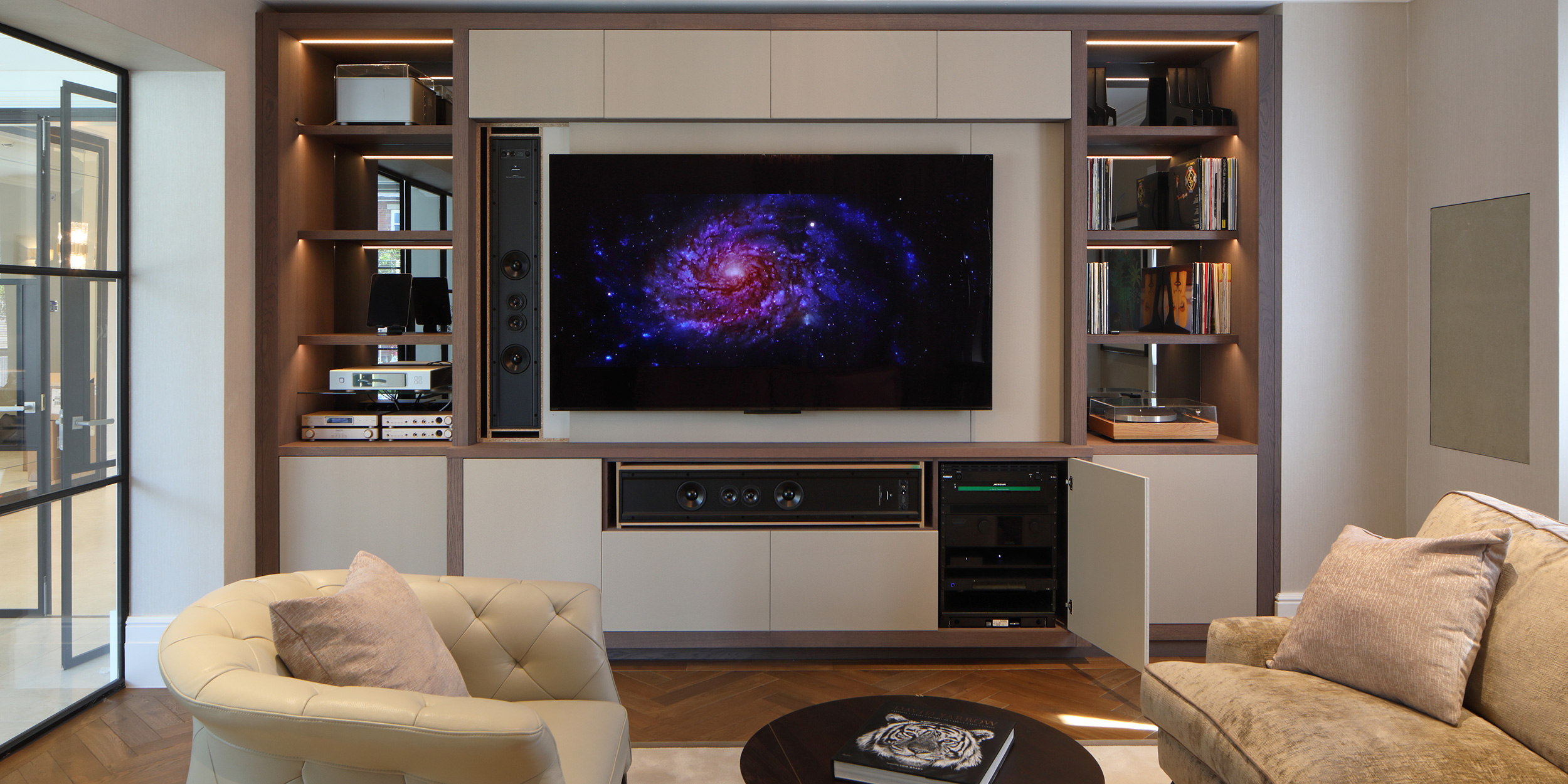 Meridian’s HPA technology optimises the output and coverage of sound when Meridian architectural loudspeakers are arranged in this type of close-proximity array configuration. It ensures that high SPL targets can be achieved across the entire listening region, without distortion. The HPA configuration ensures minimal interference and spectral variation between speakers, resulting in an even response so that every listener in the room can experience Meridian’s signature high resolution sound and fidelity. It also allowed the Surrey Hills Home Cinemas team to maintain the 100mm mounting depth while no extra equipment was required in the rack to support the additional channels.