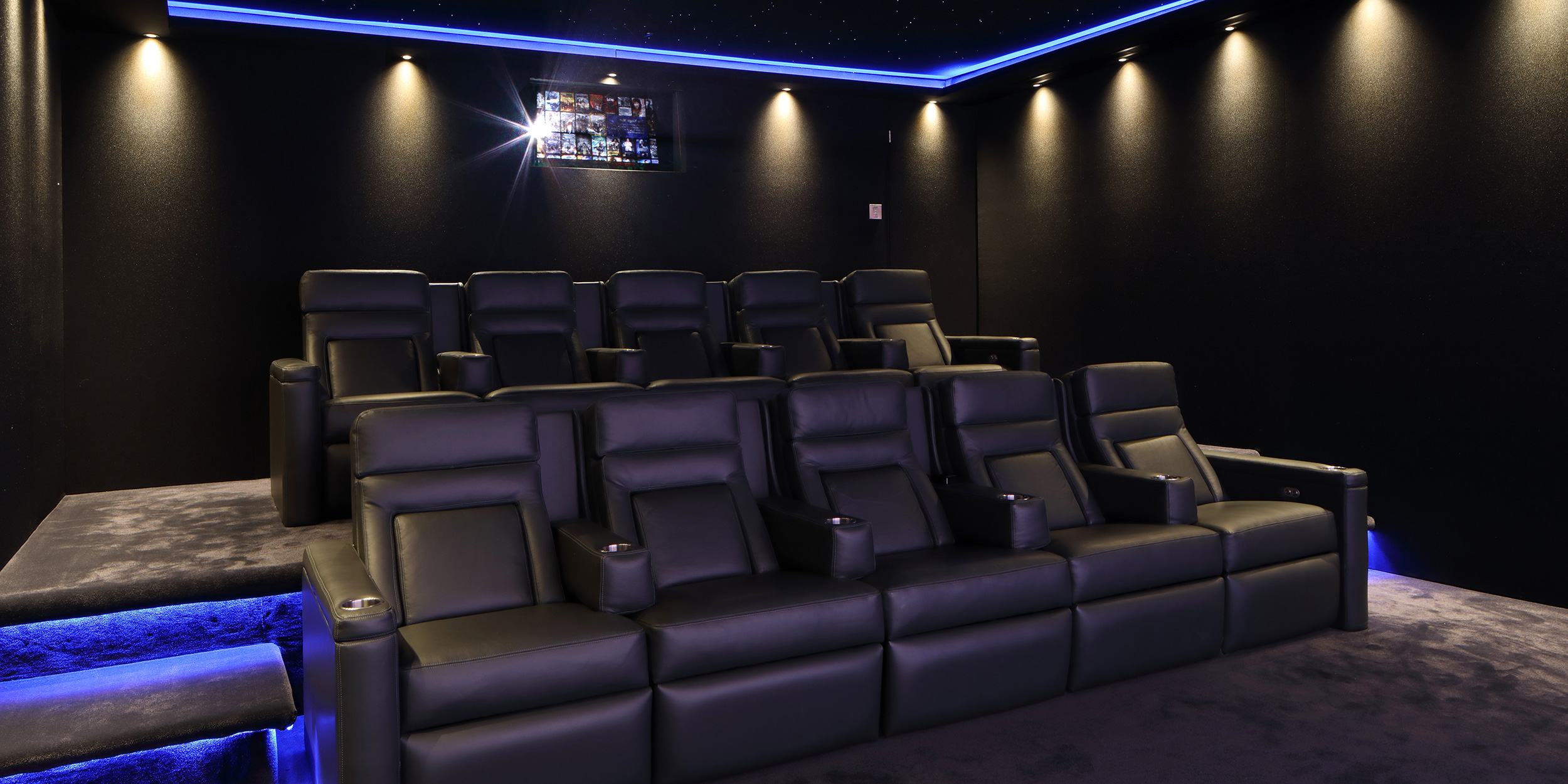 Having longed for their own premium quality home cinema for 40 years, the client took the opportunity to build this dream room in a newly formed basement space on the property. Surrey Hills Home Cinemas were briefed to construct a cinema where the family could indulge their passion for action movies but equally find a comfortable place where they could relax and lose themselves in classical music performance.