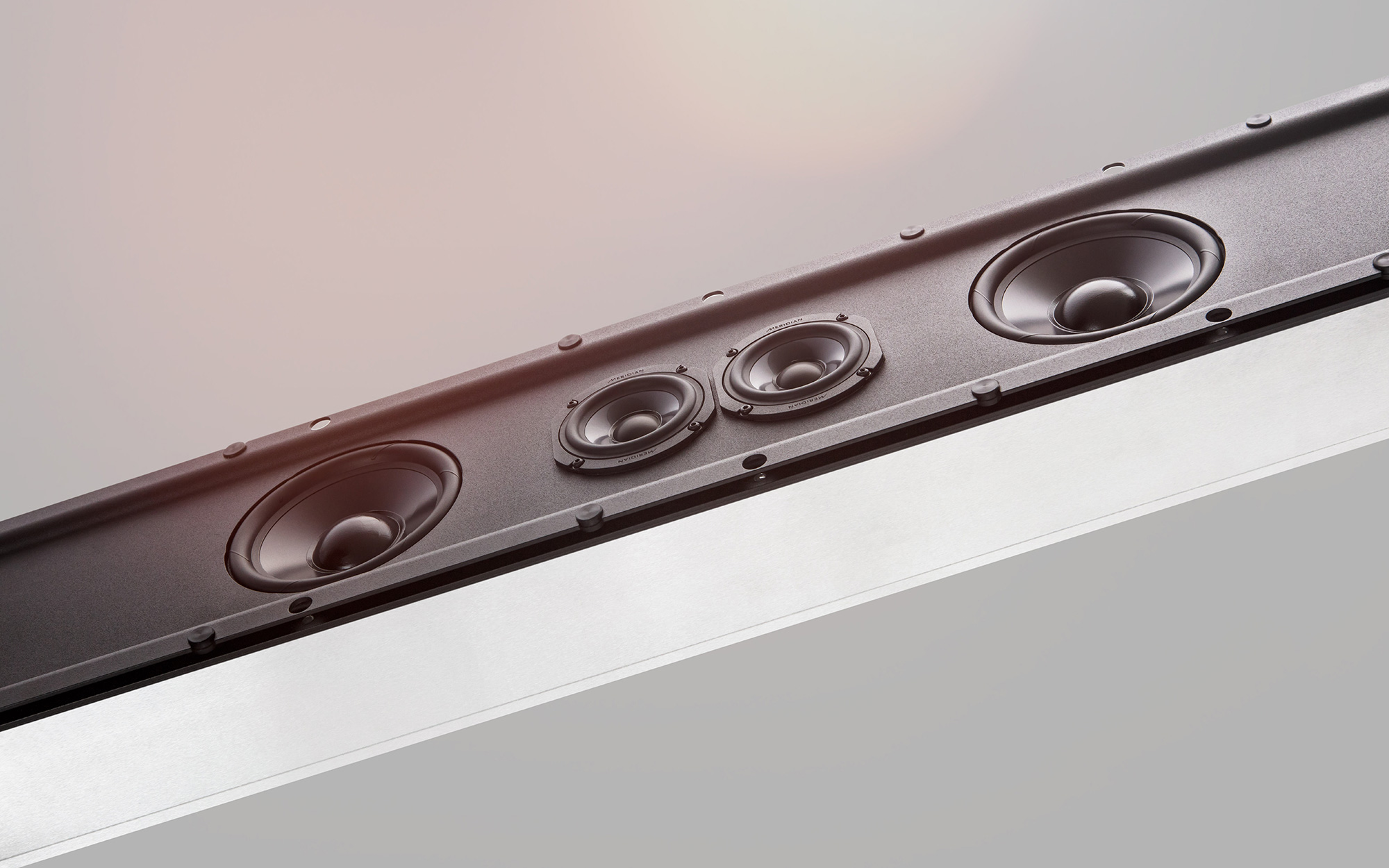 Image Elevation psychoacoustically raises the sound image to the centre of a screen – where the listener would expect to hear it from.