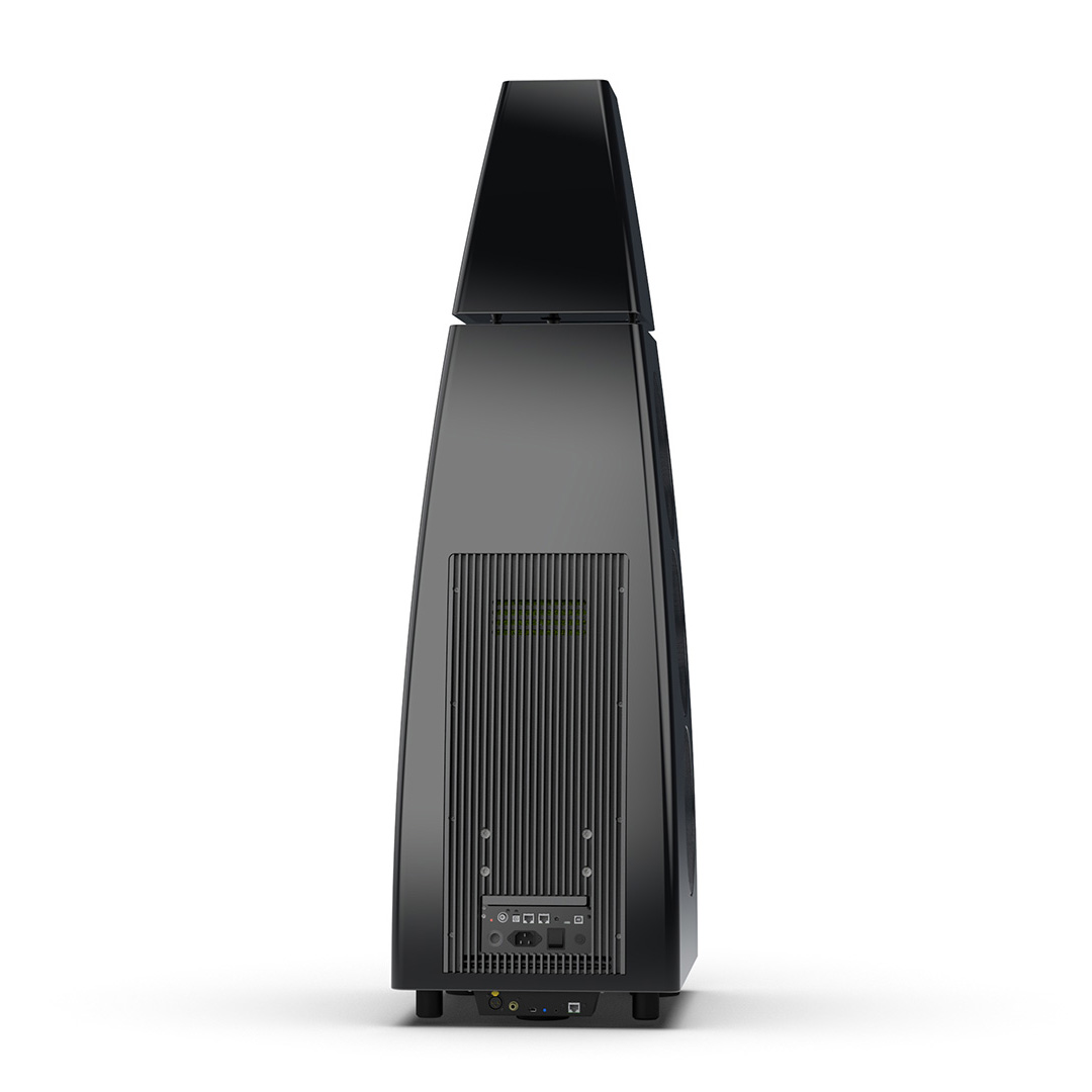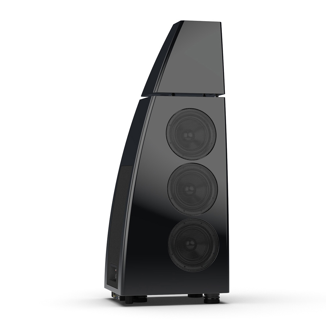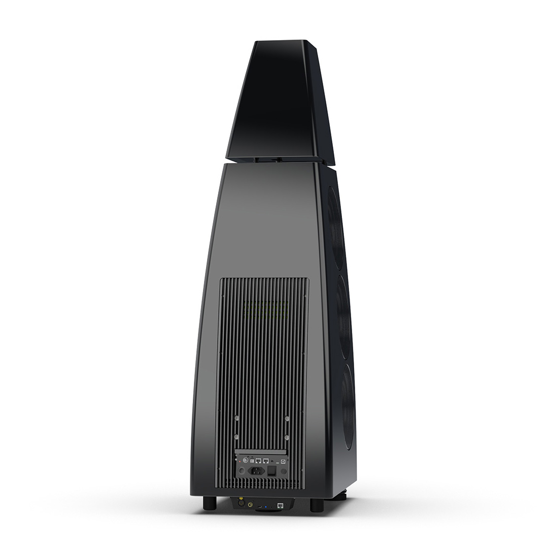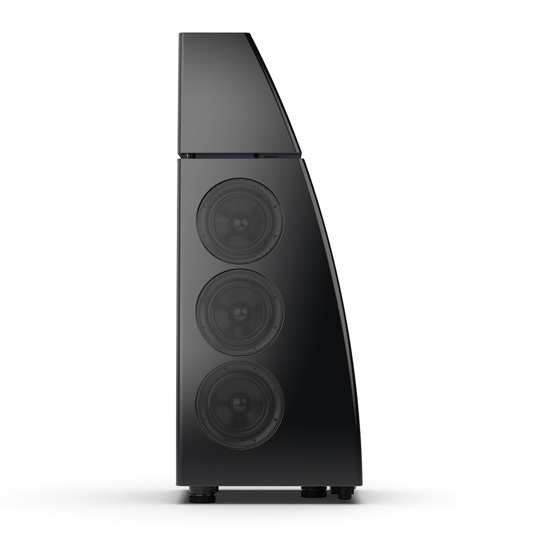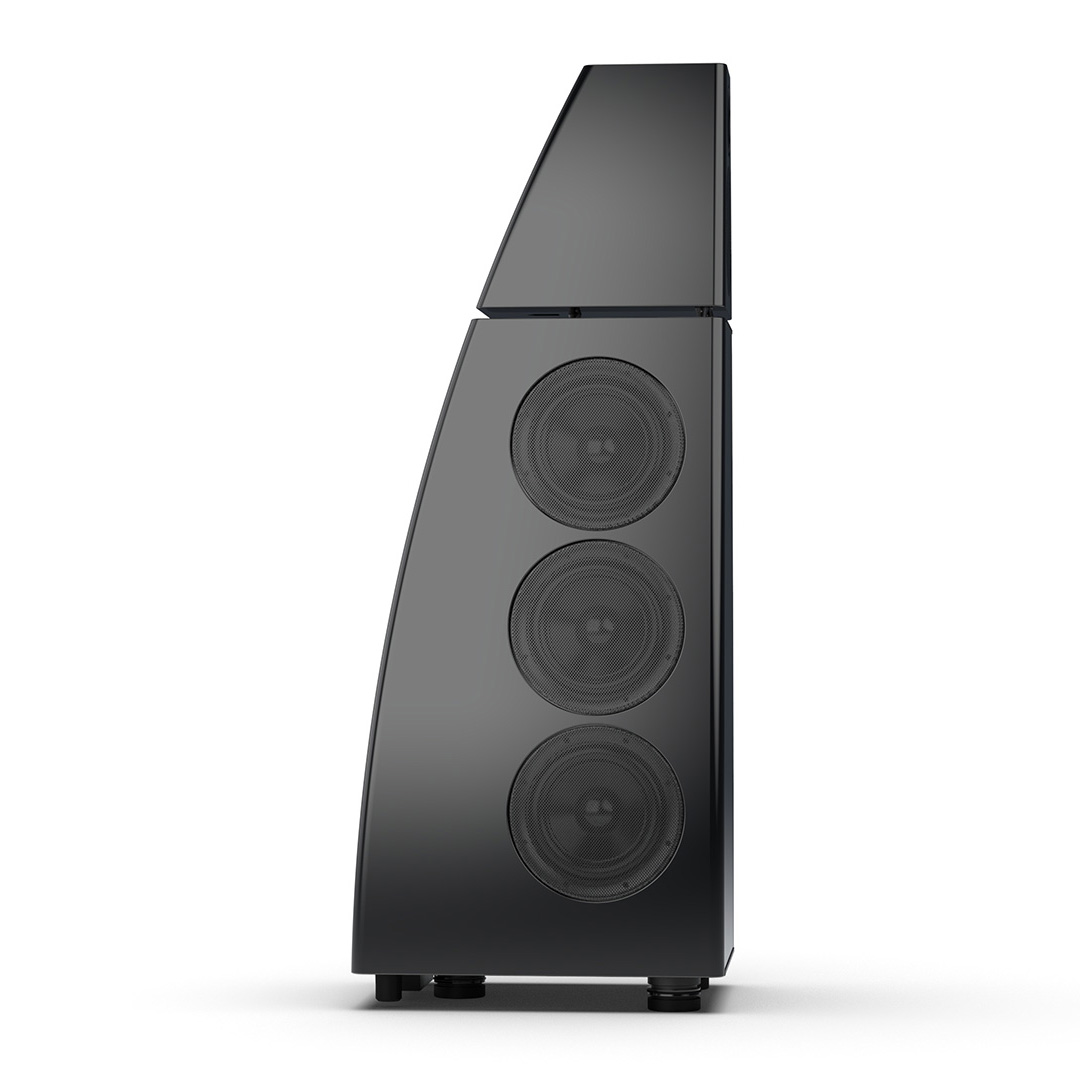 Separate head-unit isolates the all-new tweeter and mid-range driver from the main enclosure. Curved lines, based on an ellipse, contribute to rigidity and avoid parallel internal surfaces. Outer walls engineered from a layered combination of birch plywood, aluminium and resin are combined with substantial internal bracing to create an incredibly inert cabinet.
