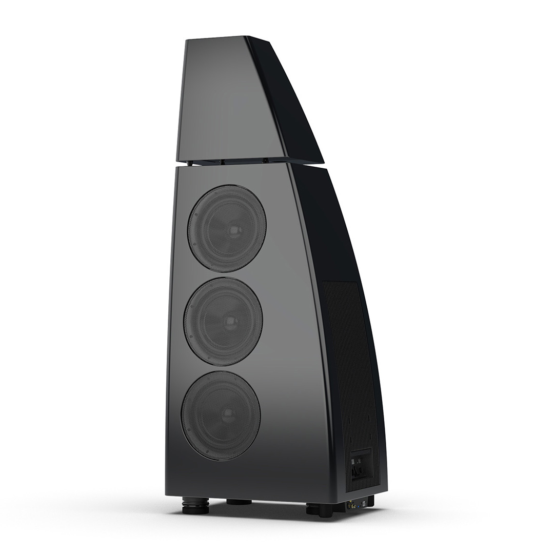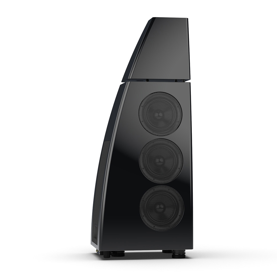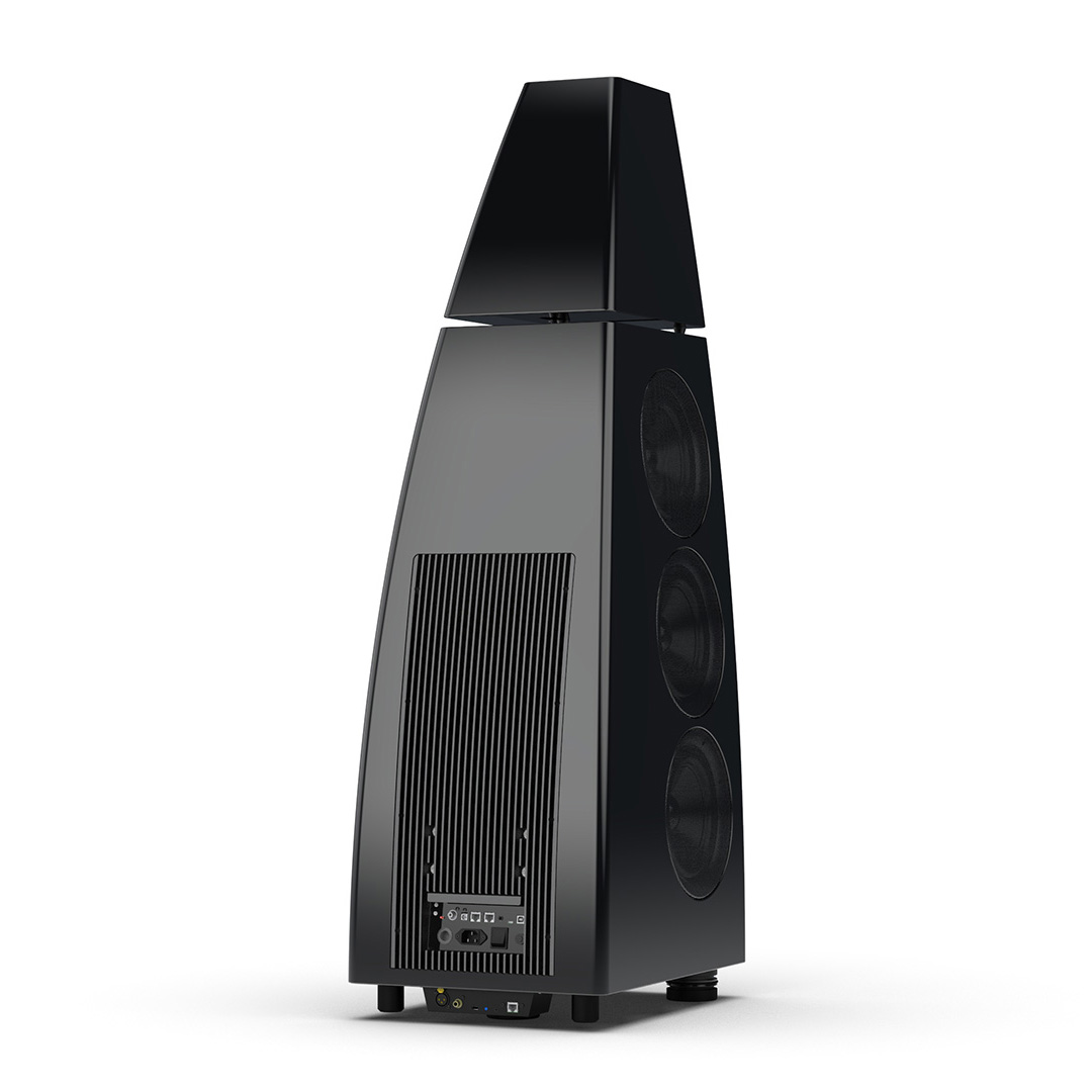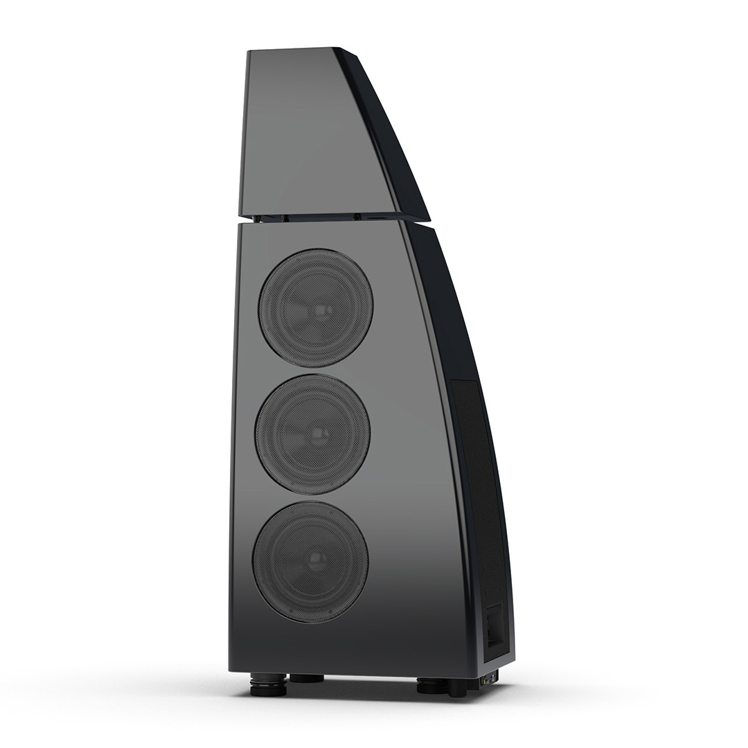 Separate head-unit isolates the all-new tweeter and mid-range driver from the main enclosure. Curved lines, based on an ellipse, contribute to rigidity and avoid parallel internal surfaces. Outer walls engineered from a layered combination of birch plywood, aluminium and resin are combined with substantial internal bracing to create an incredibly inert cabinet.