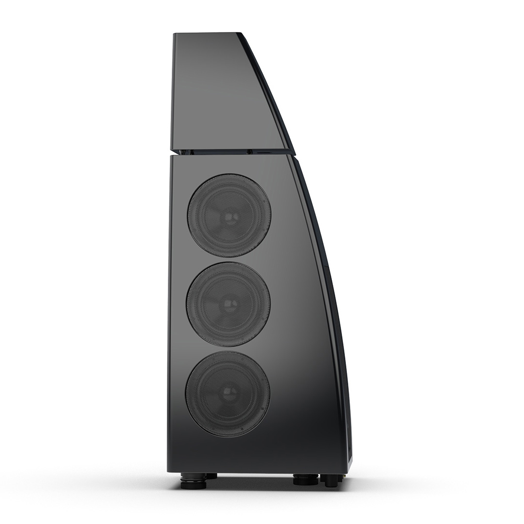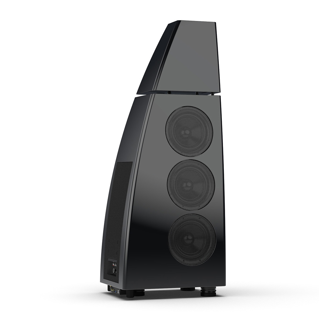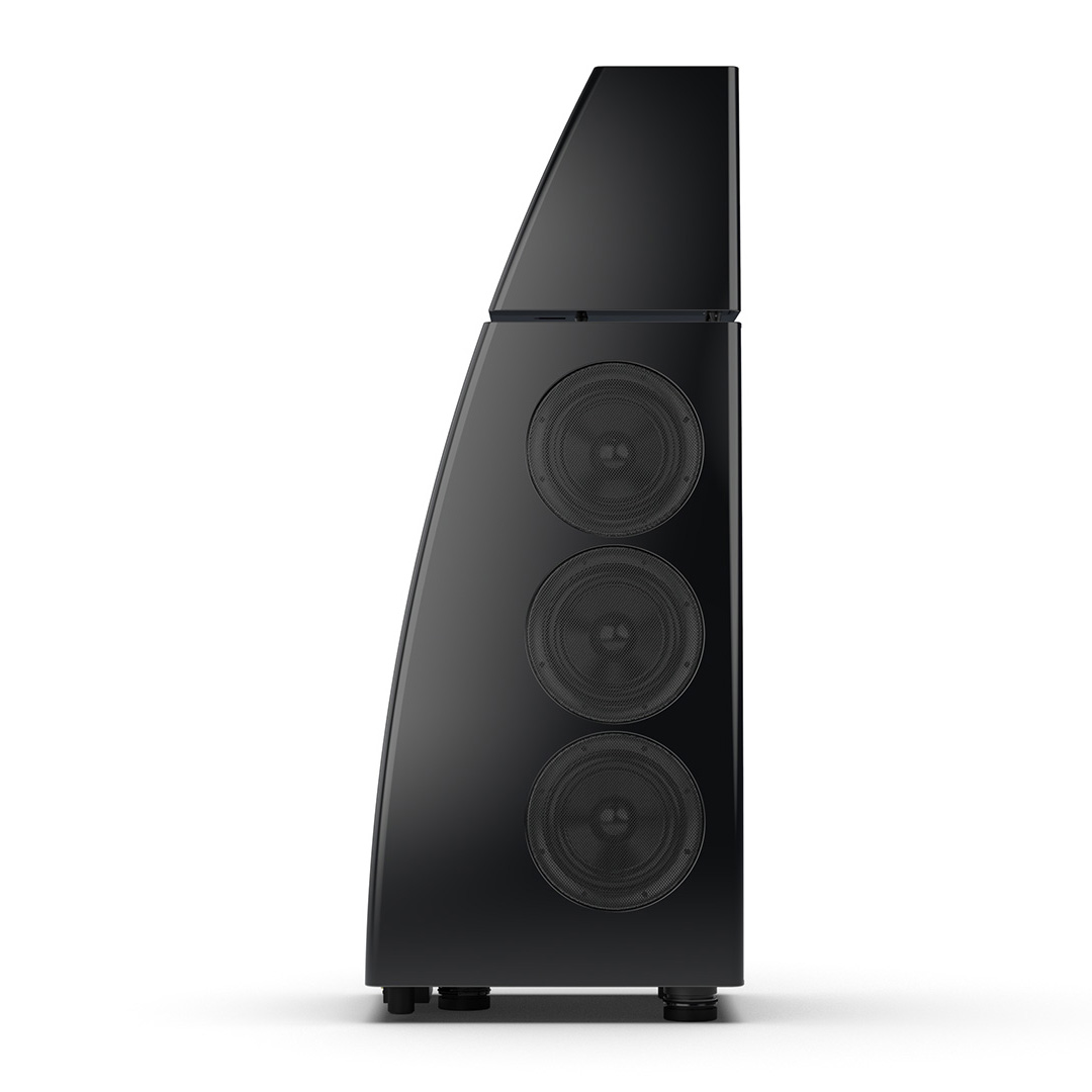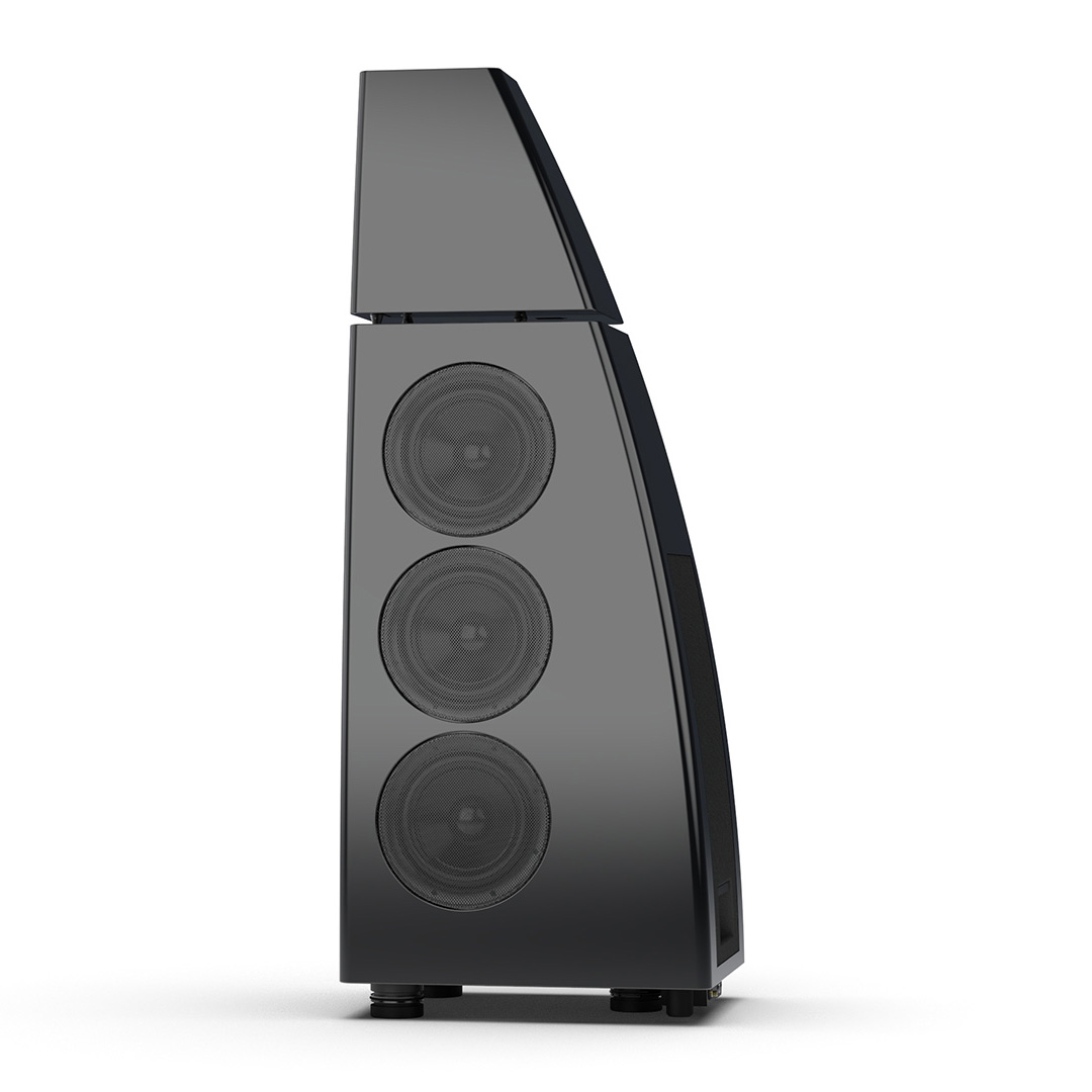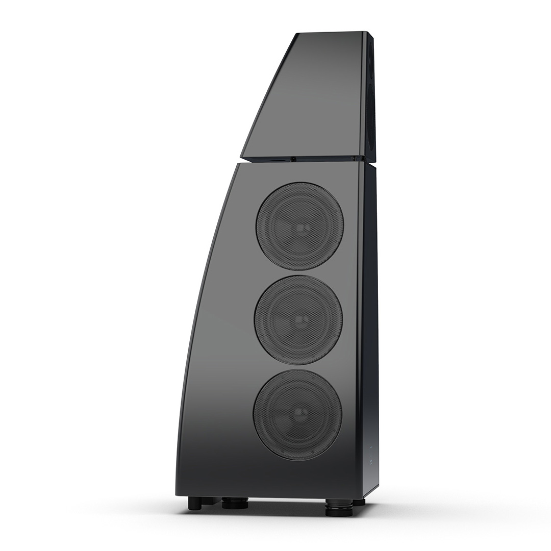 Separate head-unit isolates the all-new tweeter and mid-range driver from the main enclosure. Curved lines, based on an ellipse, contribute to rigidity and avoid parallel internal surfaces. Outer walls engineered from a layered combination of birch plywood, aluminium and resin are combined with substantial internal bracing to create an incredibly inert cabinet.