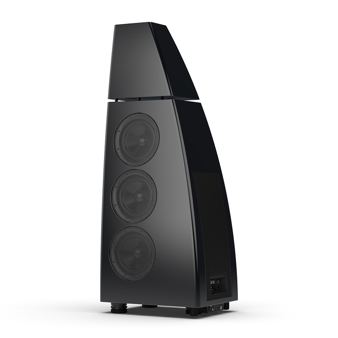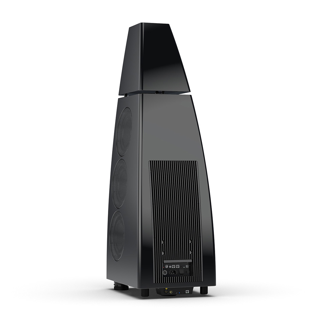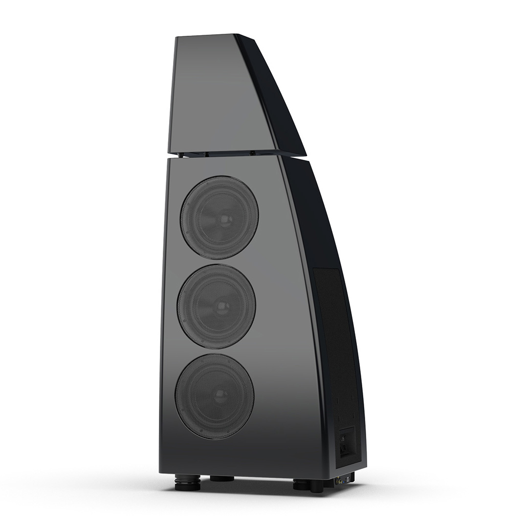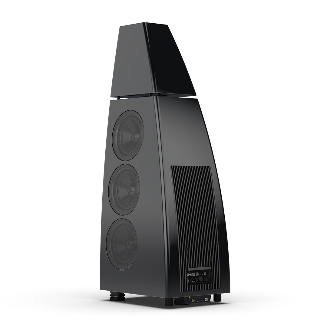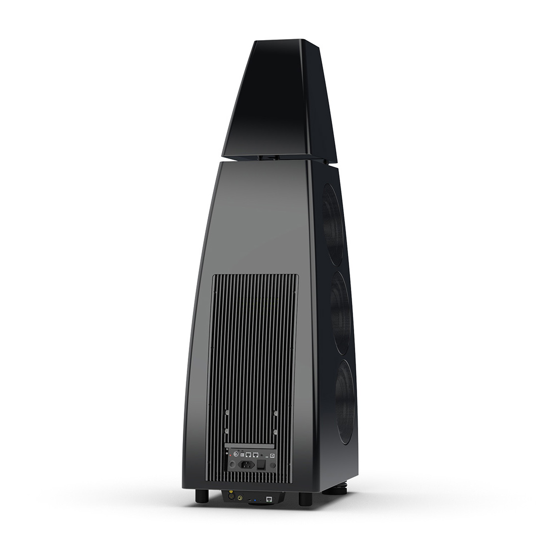 Separate head-unit isolates the all-new tweeter and mid-range driver from the main enclosure. Curved lines, based on an ellipse, contribute to rigidity and avoid parallel internal surfaces. Outer walls engineered from a layered combination of birch plywood, aluminium and resin are combined with substantial internal bracing to create an incredibly inert cabinet.
