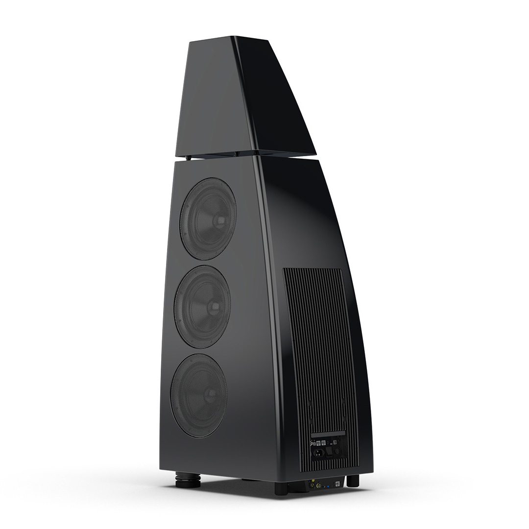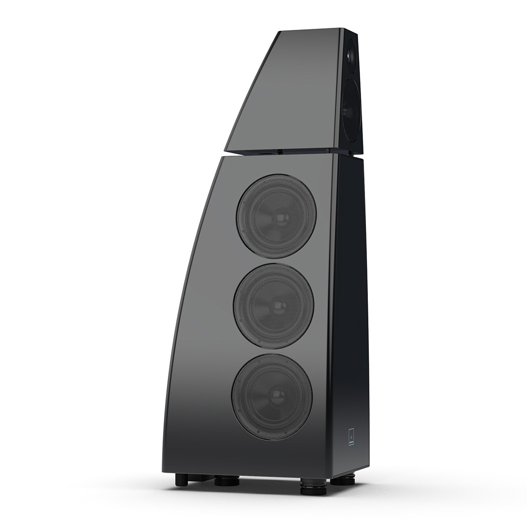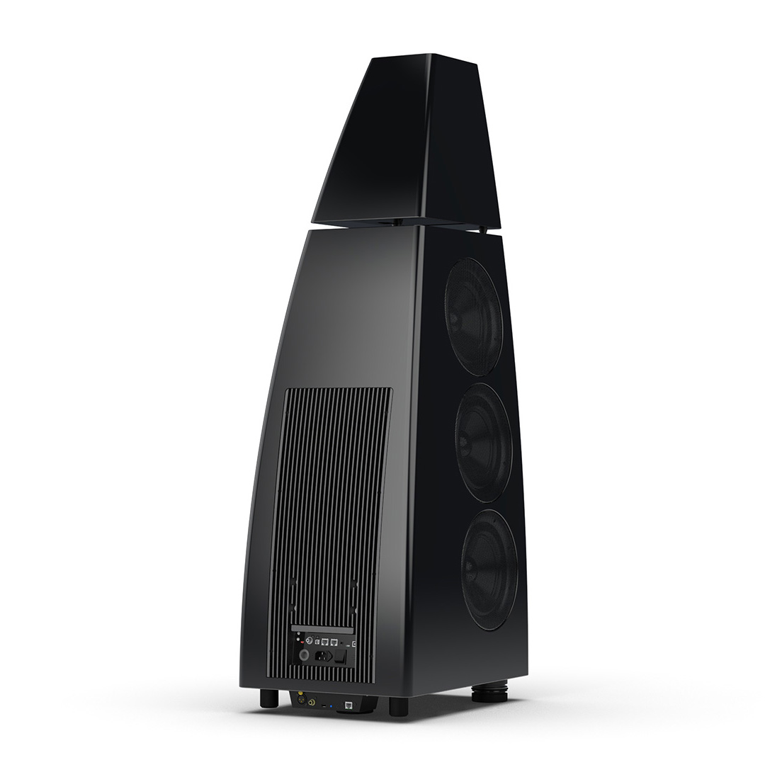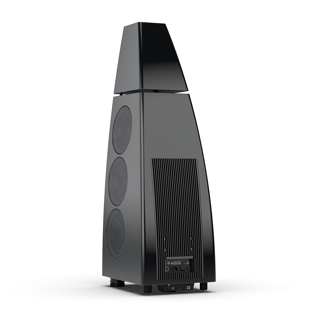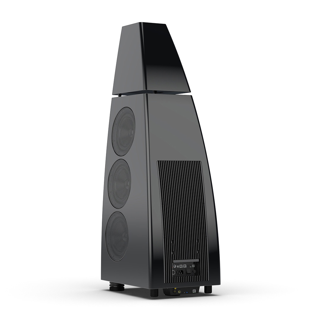 Separate head-unit isolates the all-new tweeter and mid-range driver from the main enclosure. Curved lines, based on an ellipse, contribute to rigidity and avoid parallel internal surfaces. Outer walls engineered from a layered combination of birch plywood, aluminium and resin are combined with substantial internal bracing to create an incredibly inert cabinet.