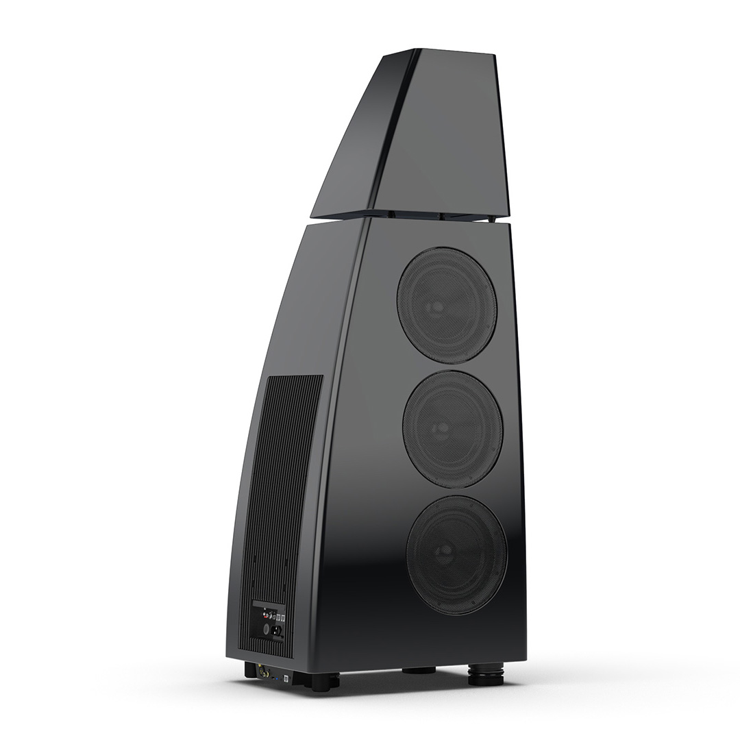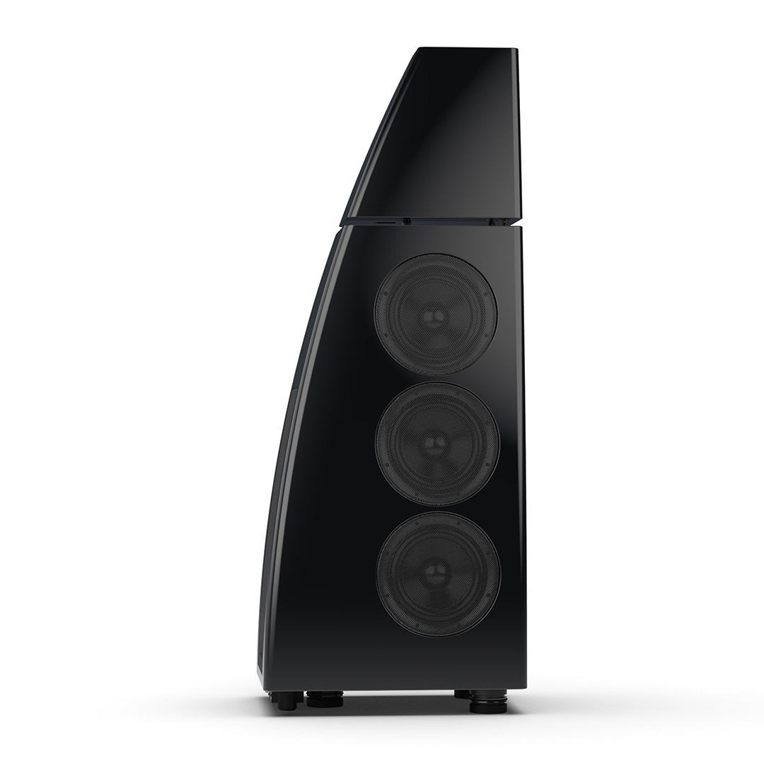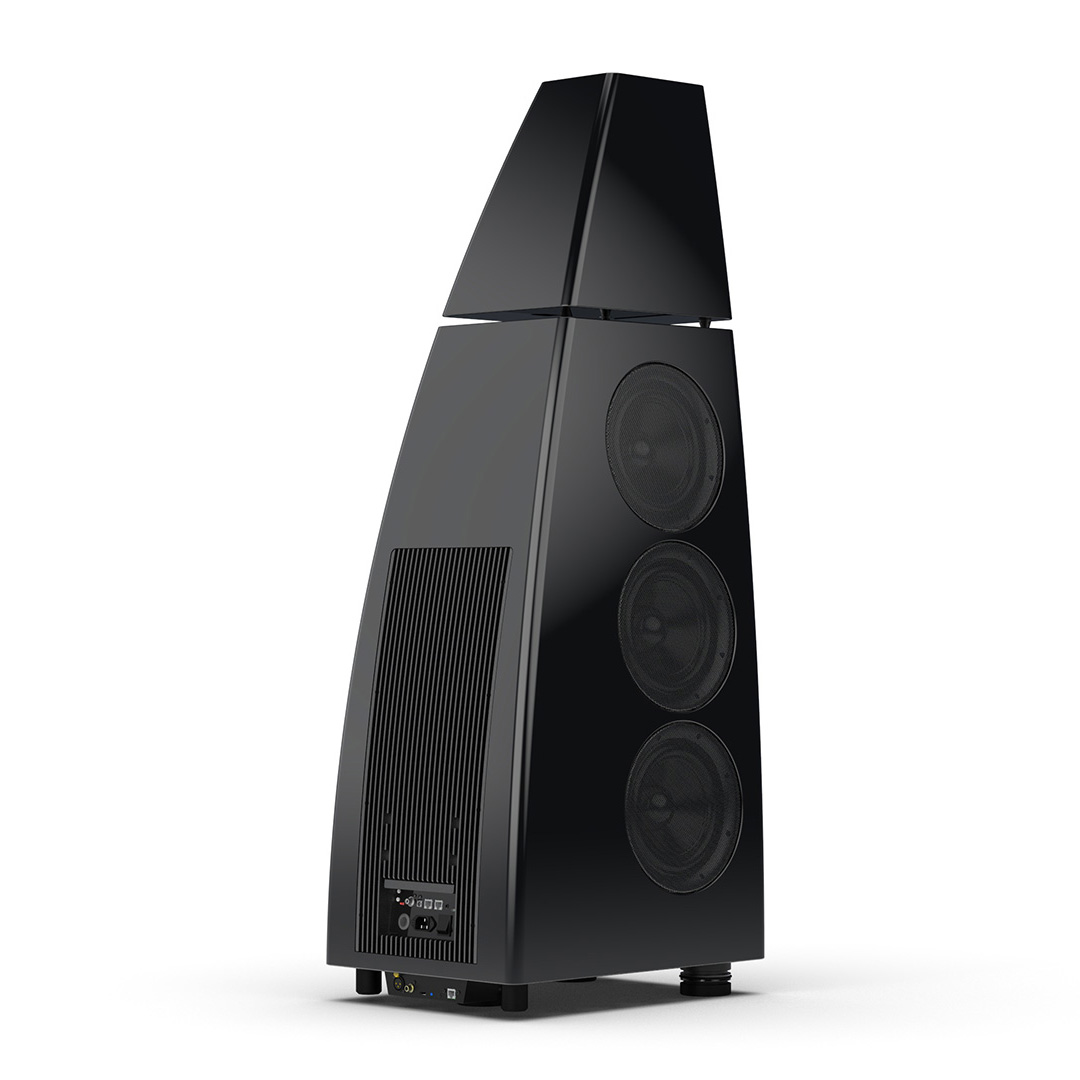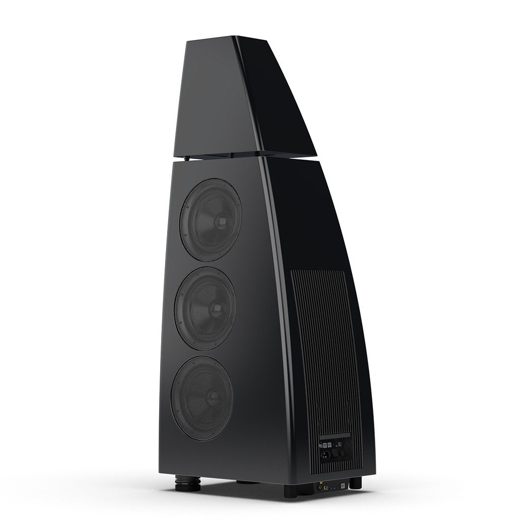 Separate head-unit isolates the all-new tweeter and mid-range driver from the main enclosure. Curved lines, based on an ellipse, contribute to rigidity and avoid parallel internal surfaces. Outer walls engineered from a layered combination of birch plywood, aluminium and resin are combined with substantial internal bracing to create an incredibly inert cabinet.