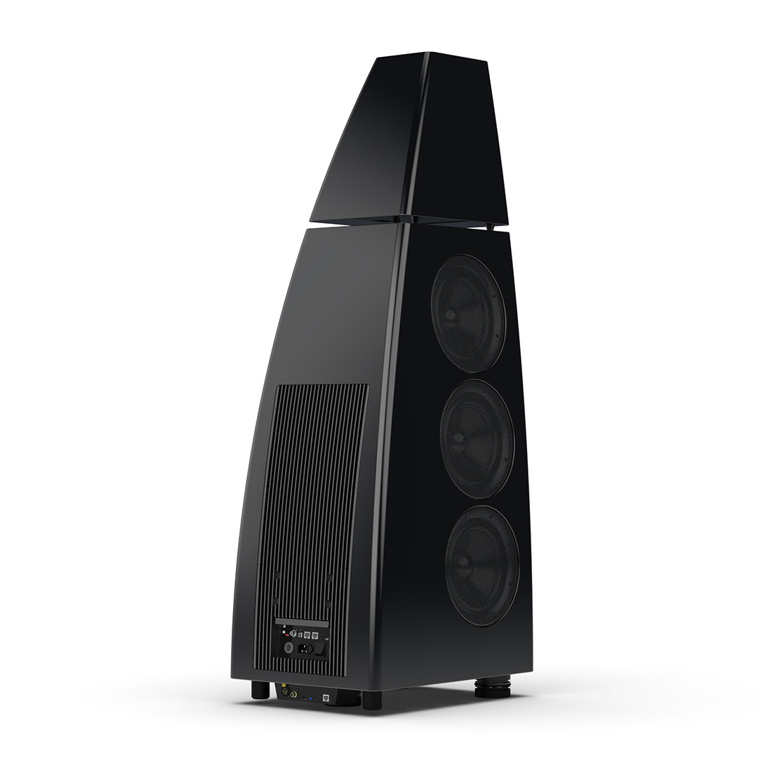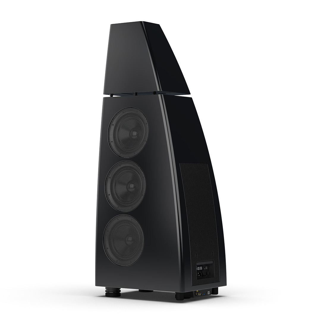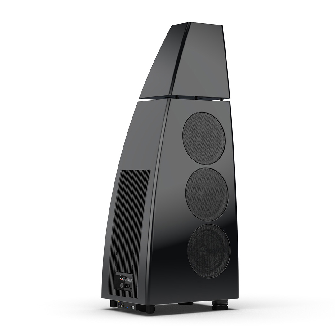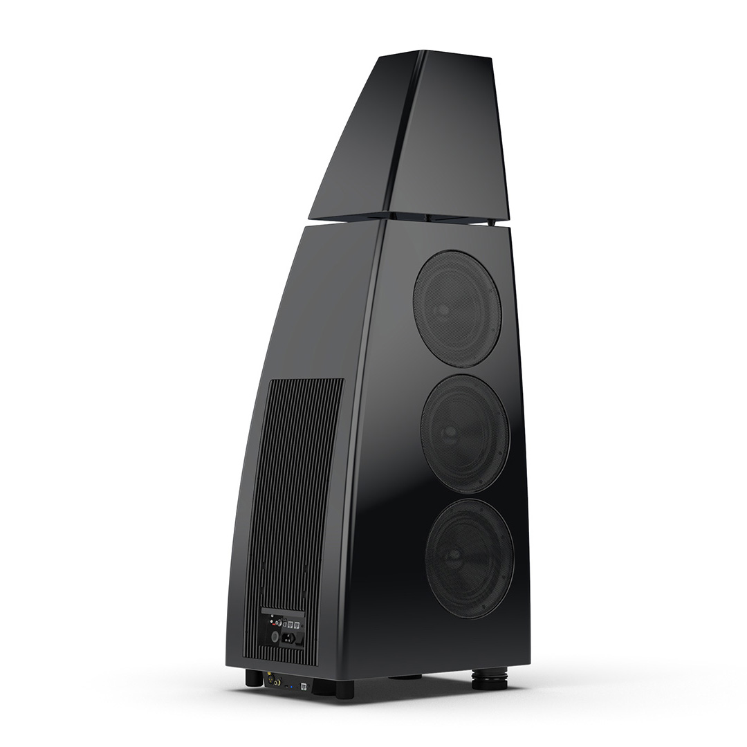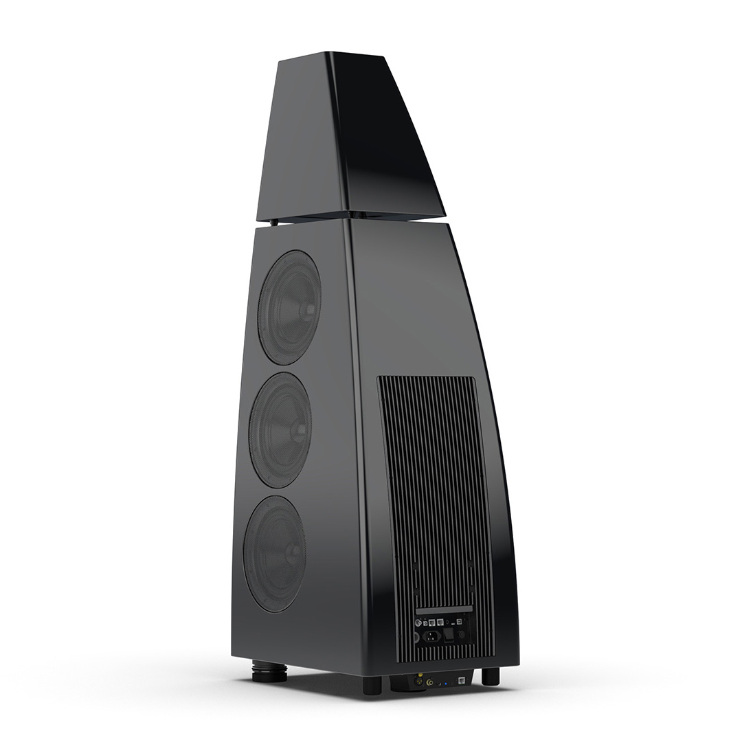 Separate head-unit isolates the all-new tweeter and mid-range driver from the main enclosure. Curved lines, based on an ellipse, contribute to rigidity and avoid parallel internal surfaces. Outer walls engineered from a layered combination of birch plywood, aluminium and resin are combined with substantial internal bracing to create an incredibly inert cabinet.