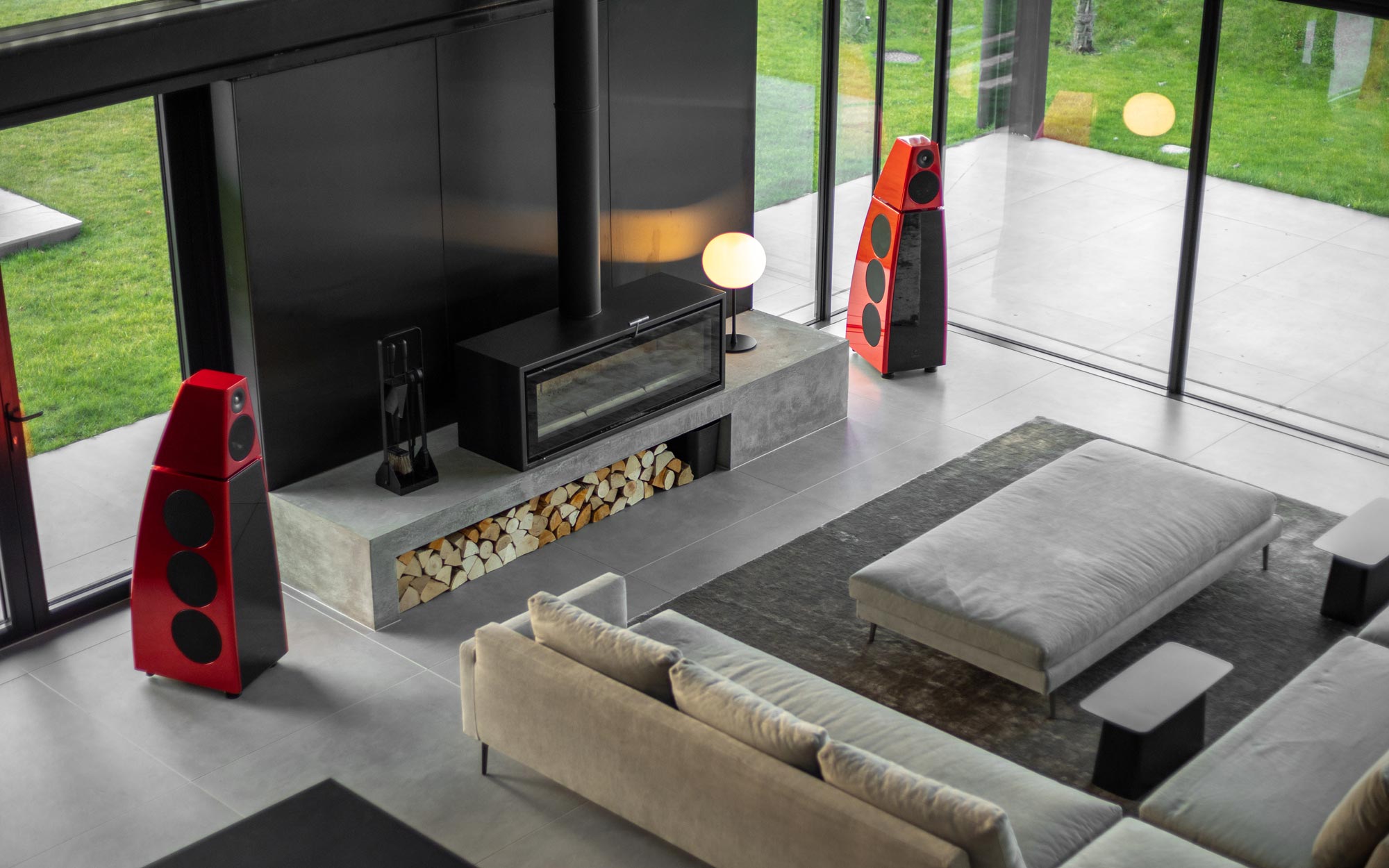 The Ultrasonic tweeter and Evo mid-range driver are each fed by a Class-AB amplifier capable of 150W into 4Ω. Each of the six Subsonic bass-drives are fed from a pair of Class-D amplifiers, with each pair capable of 240W into 4Ω.