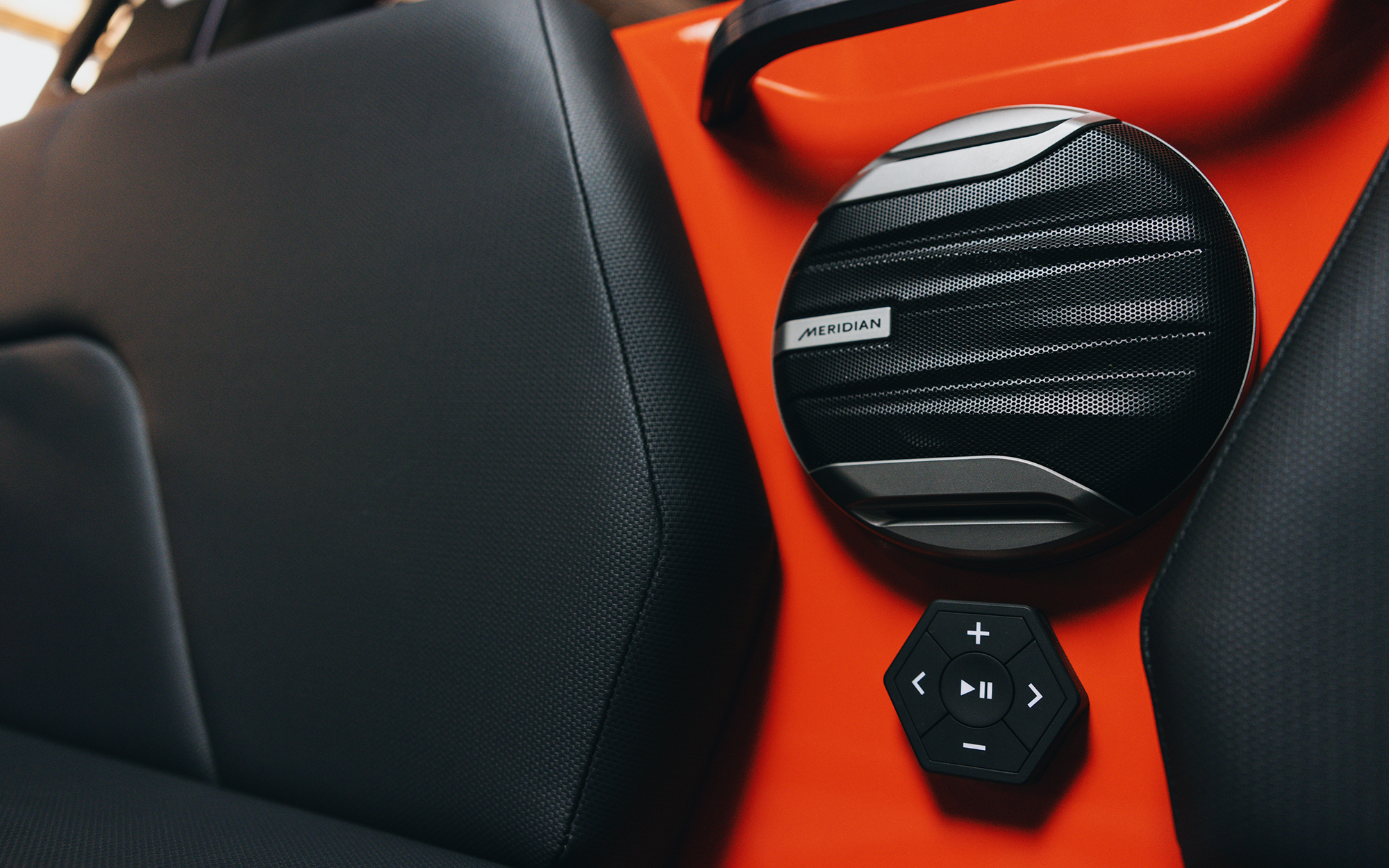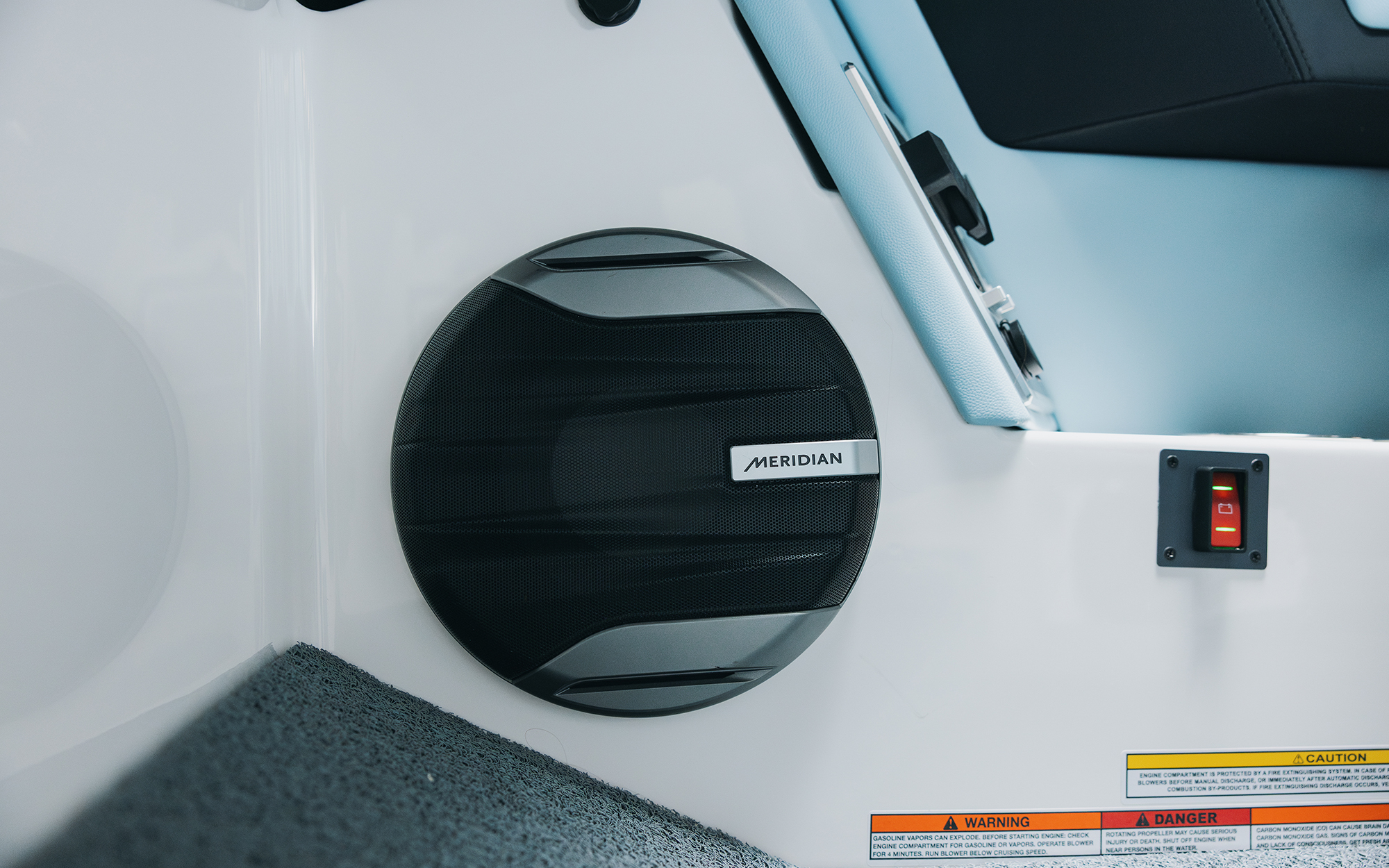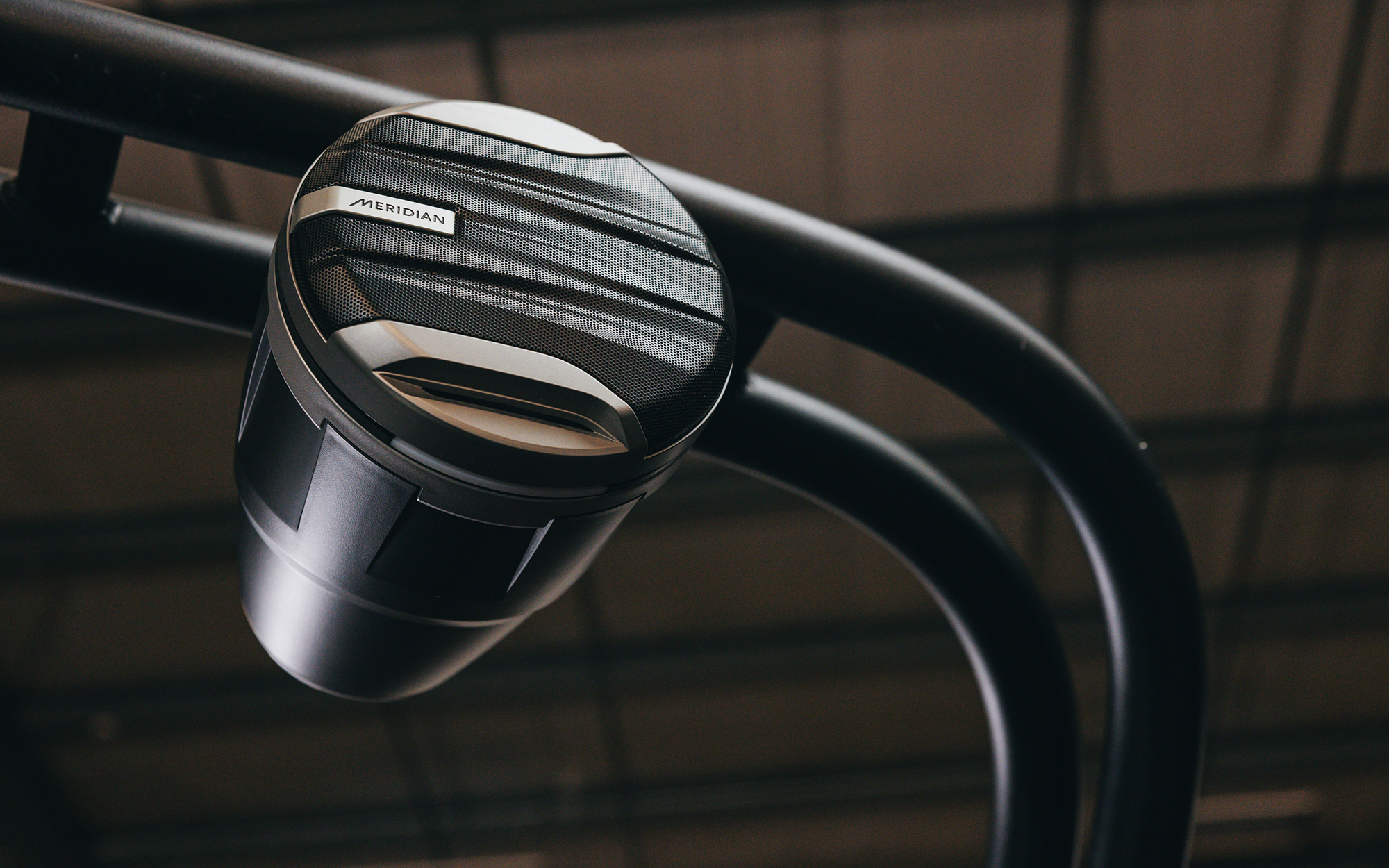 Marine conditions demand specialist tuning. Open air, engine noise and reflections all challenge audio clarity. Meridian’s marine specific psychoacoustic research, acoustic architecture and DSP tuning ensure balanced, high fidelity sound across the craft, from hull to helmet.