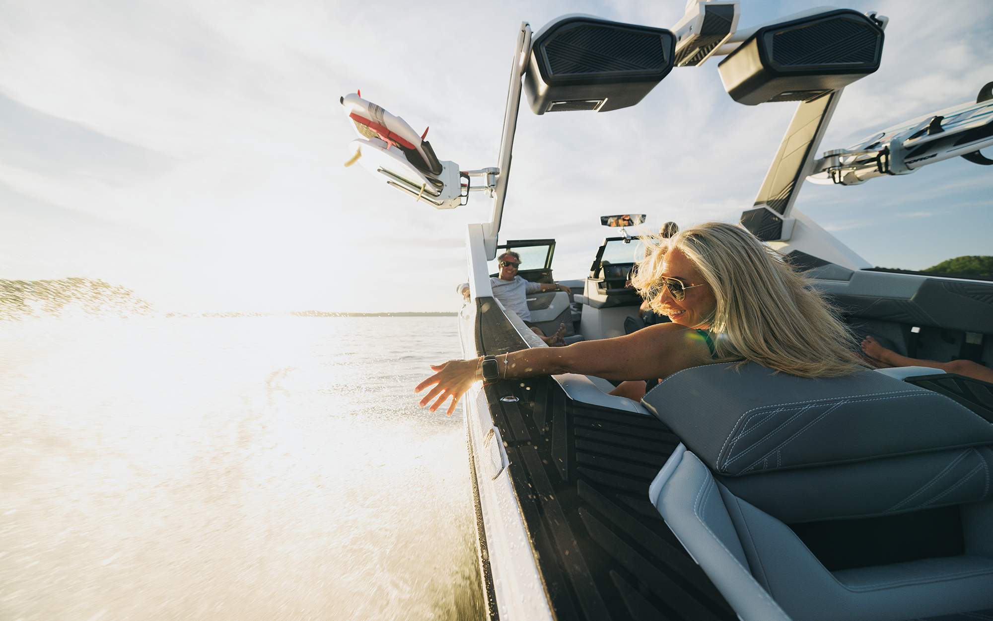 Meridian engineers took the systems they designed to the water, joining MasterCraft teams on wake runs across the US. By listening in real life conditions, including riders behind the boats with music mixed with wind and water, they fine tuned the sound to maintain clarity in the most demanding settings.