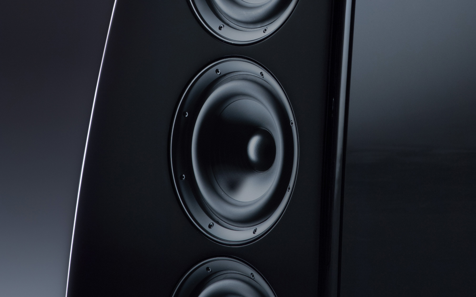 Cabinet and Mechanics: Modernised aesthetics and re-engineered cabinet accommodate mechanical performance enhancements with updated driver clamp-ring system, flush-fitting acoustically transparent metal grilles and mass-loading aluminium base plate.