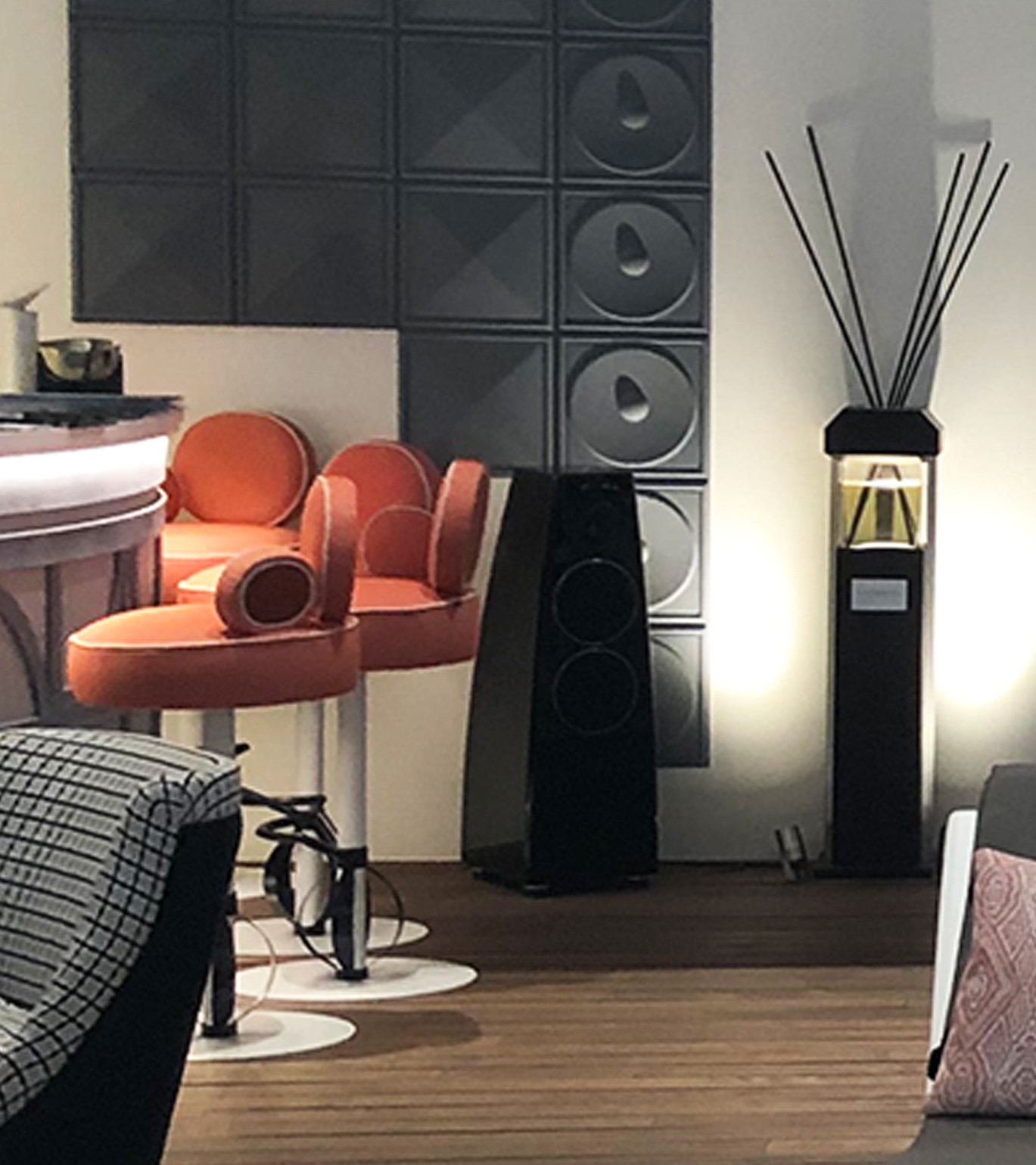The Yacht area was a flagship space at the entrance of the exhibition, where all press conferences and presentations were held. Stars AV collaborated with interior designer, Susana Urbano, and provided her with a pair of Meridian DSP5200SE digital active loudspeakers for the space.